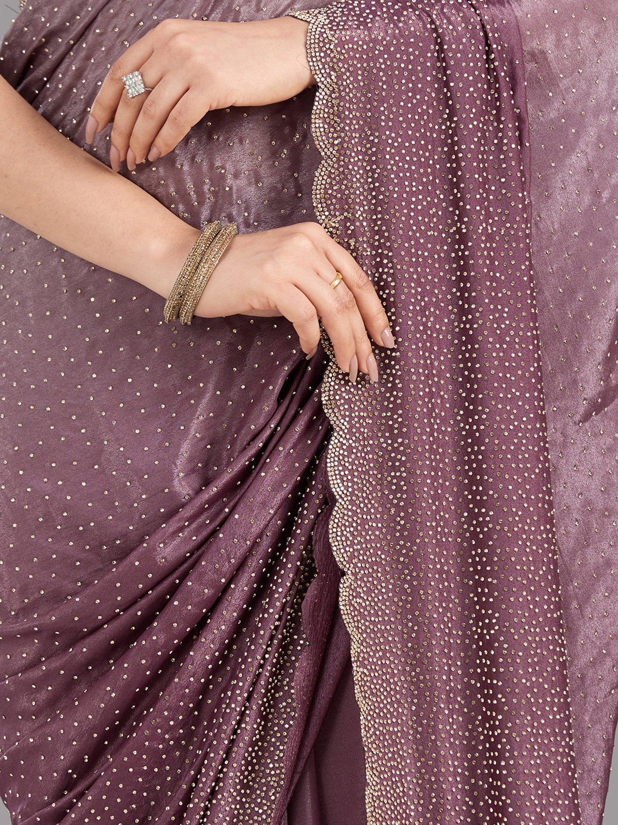 Lavender Stonework (Gold) Satin Saree