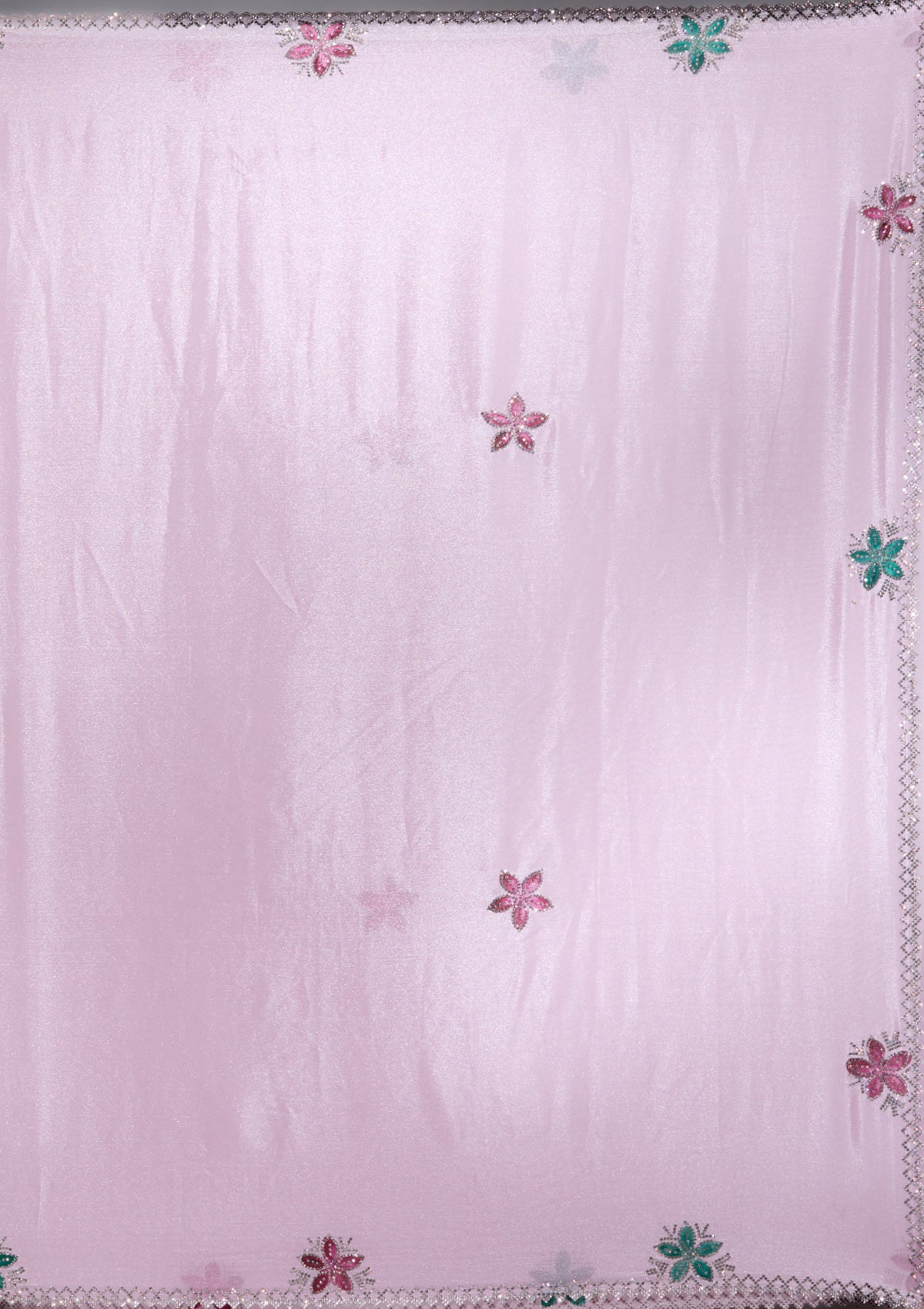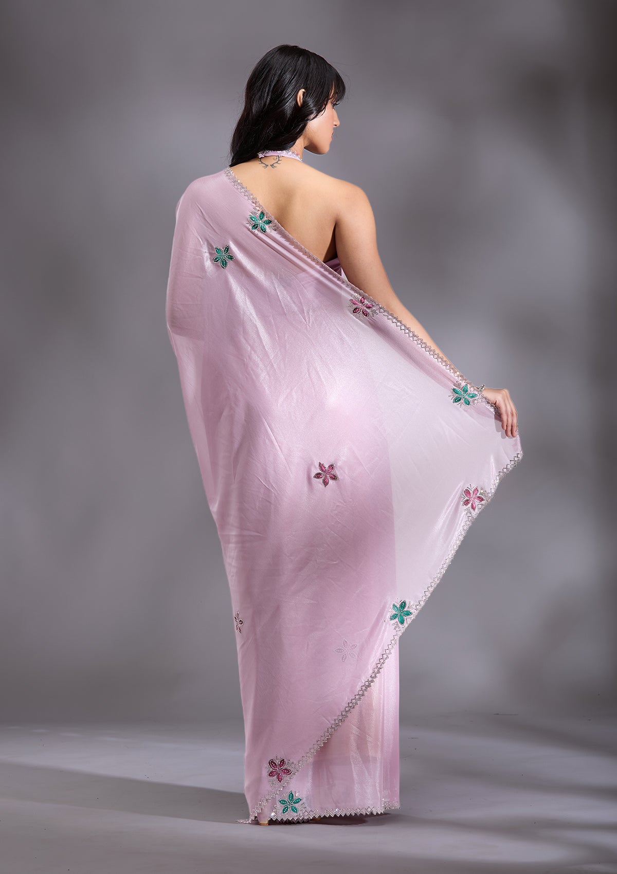 Lavender Saree in Satin fabric. The Saree is elevated with Stonework (Silver) embroidery. It comes with an Unstitched blouse. Comes with the Koskii promise of premium quality.