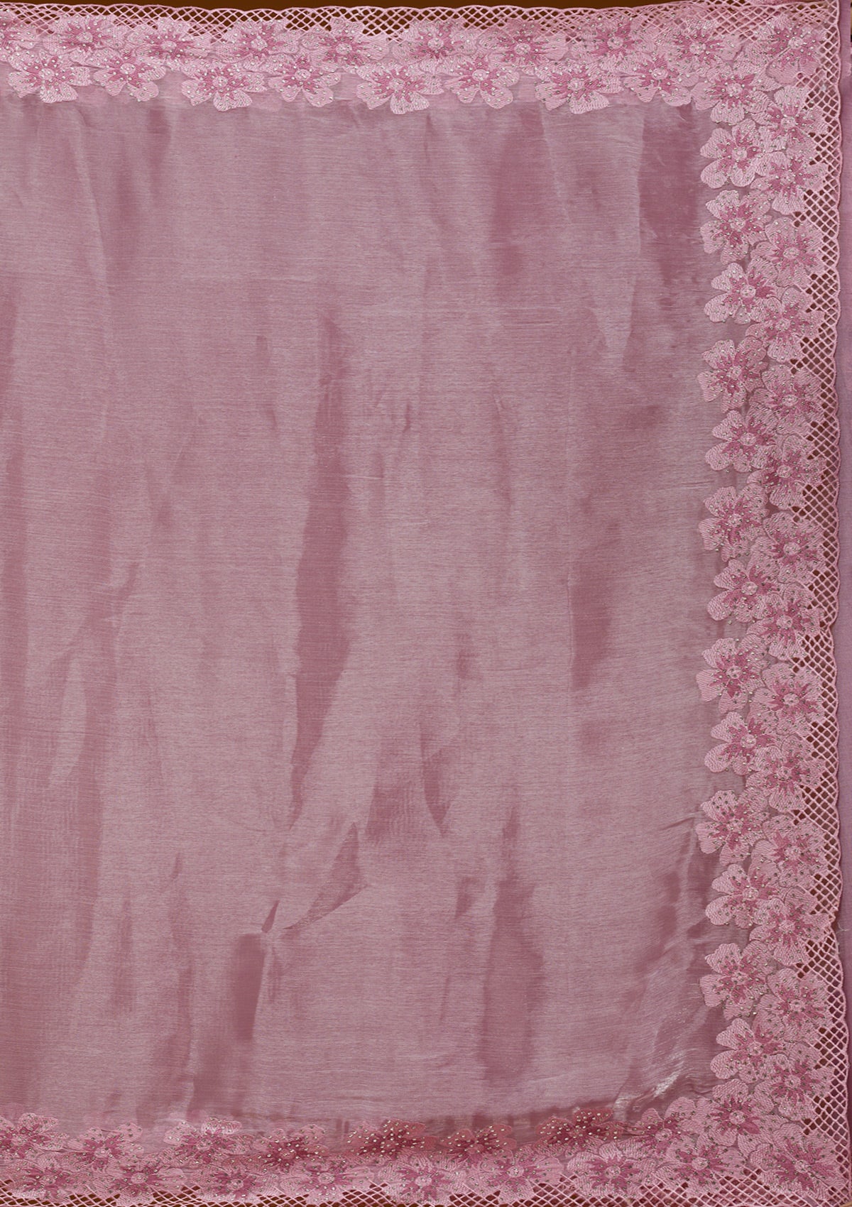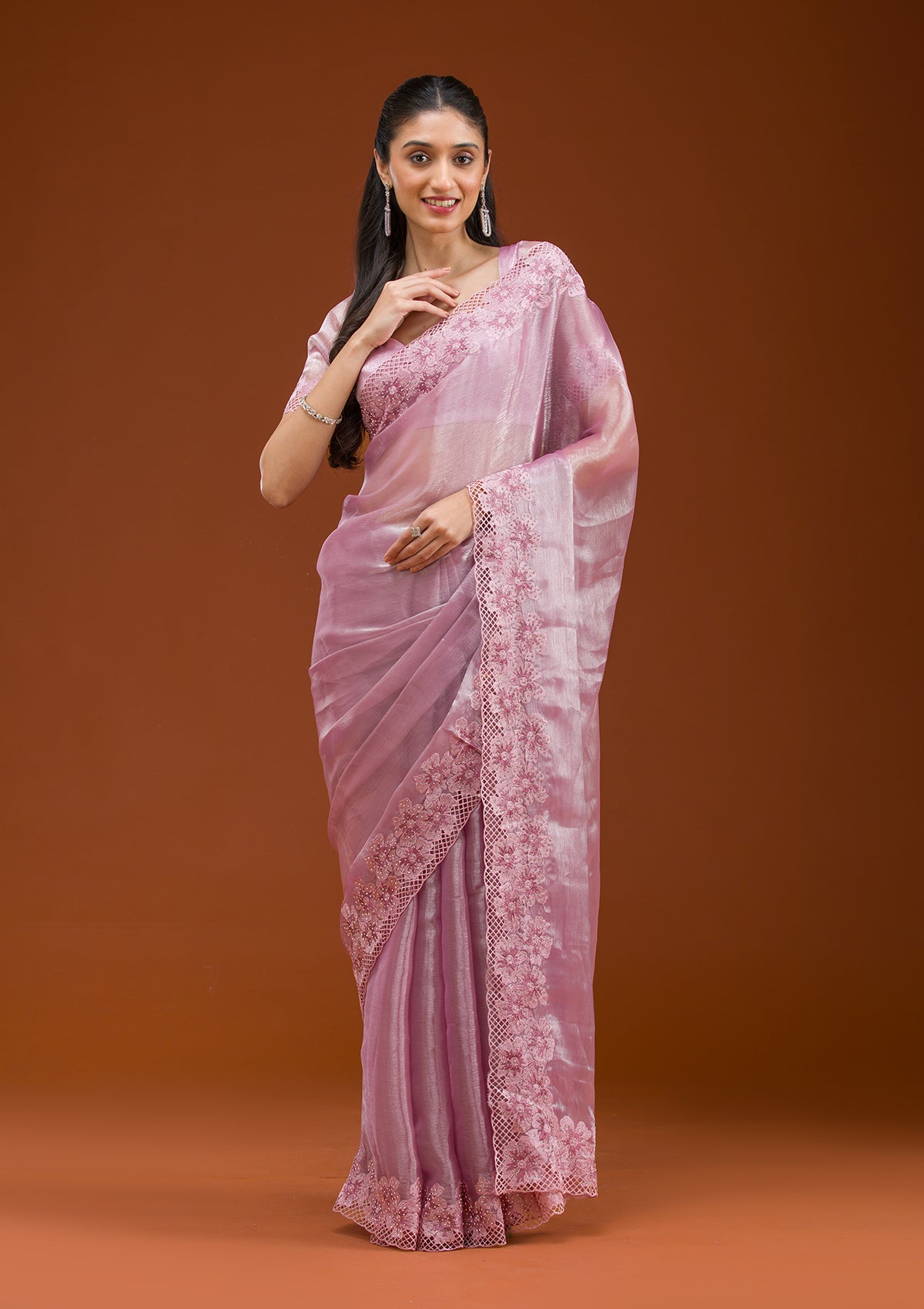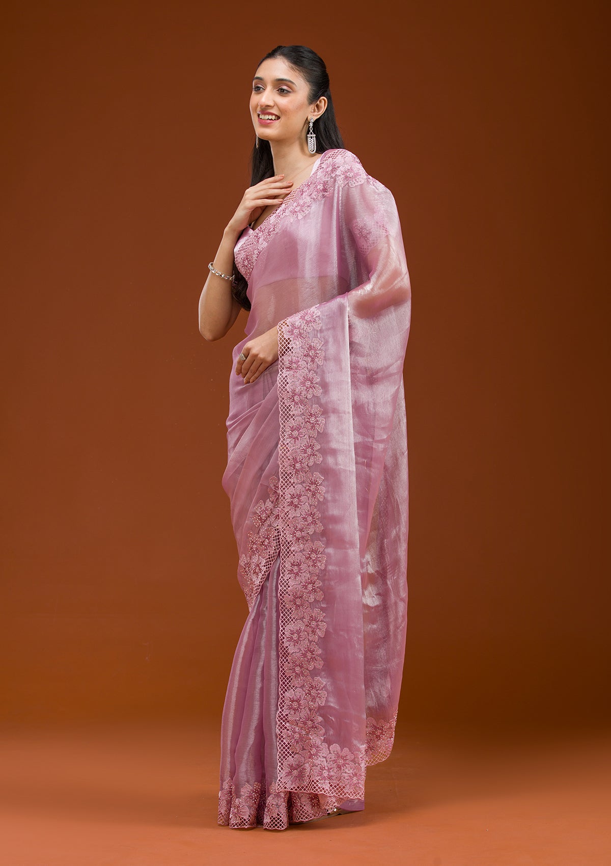 Mauve Saree in Tissue fabric. The Saree is elevated with Stonework embroidery. It comes with an Unstitched blouse. Comes with the Koskii promise of premium quality.