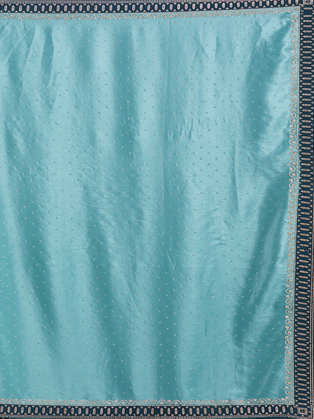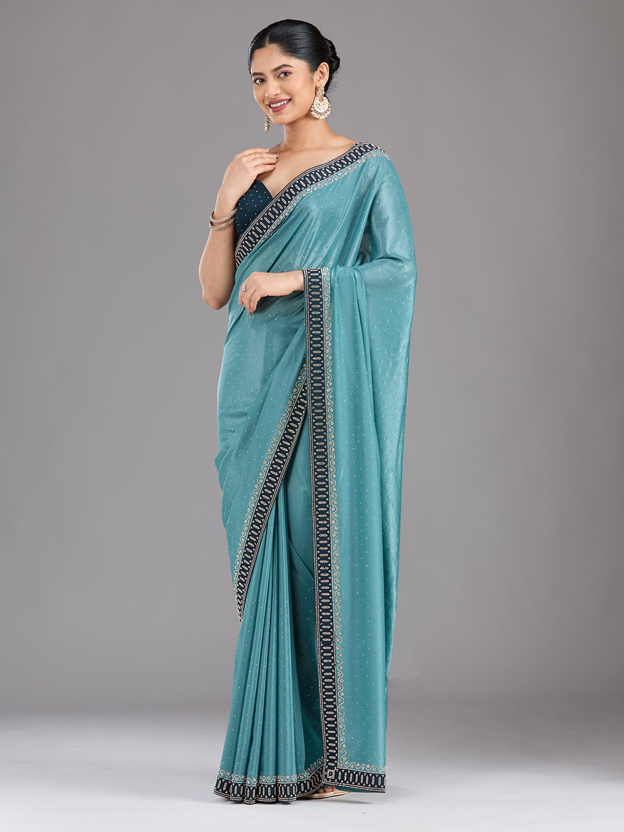 Sea Green Saree in Chiffon fabric. The Saree is elevated with Stonework (Silver) embroidery. It comes with an Unstitched blouse. Comes with the Koskii promise of premium quality.