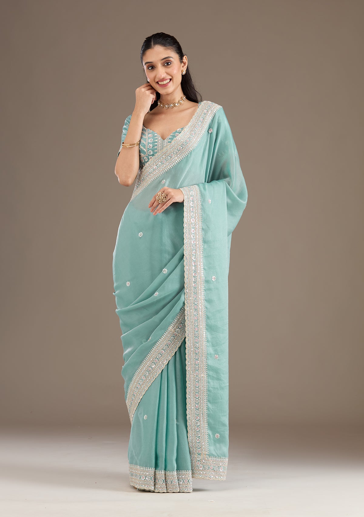 Sea Green Saree in Tissue fabric The Saree is elevated with Prints It comes with an Unstitched blouse Comes with the Koskii promise of premium quality.