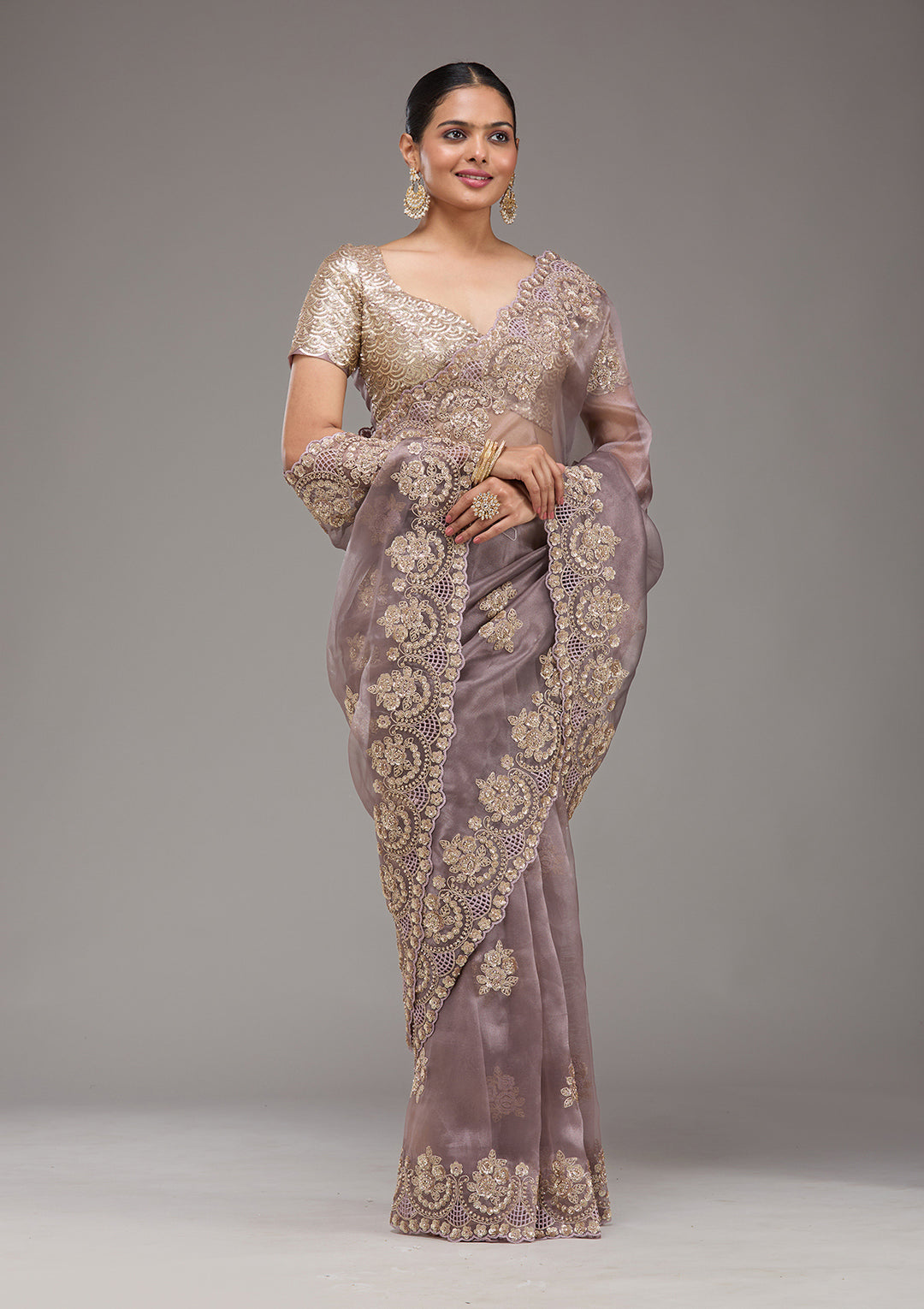 | Lavender Stonework (Gold) Tissue Saree | ₹ 4,392 | |