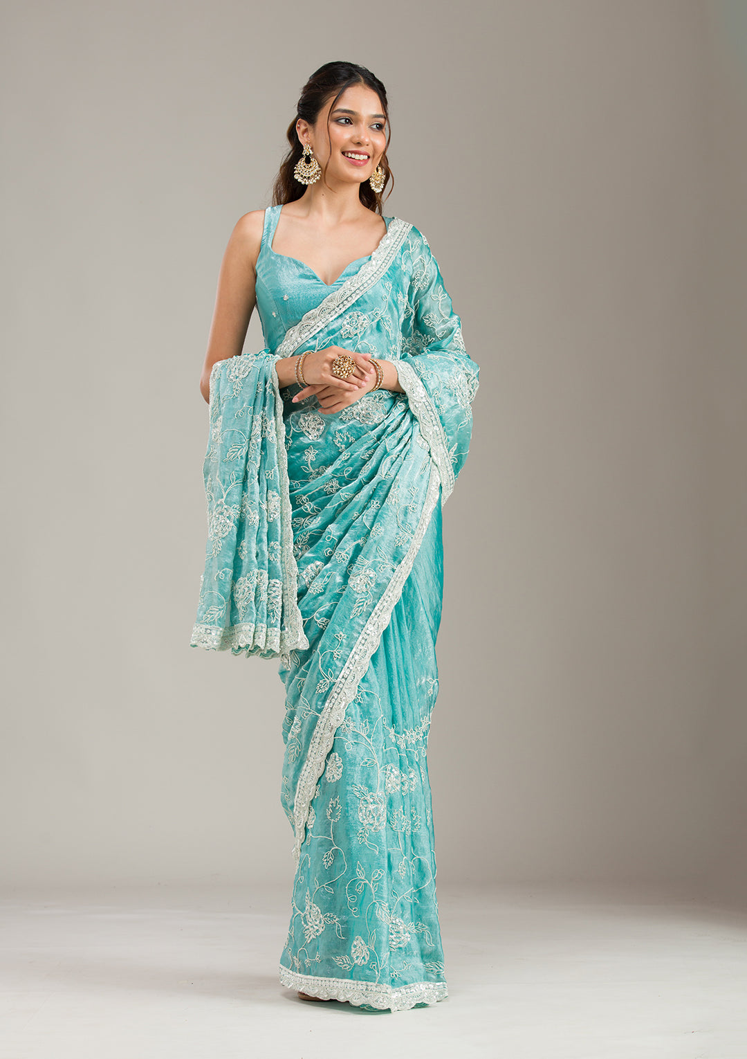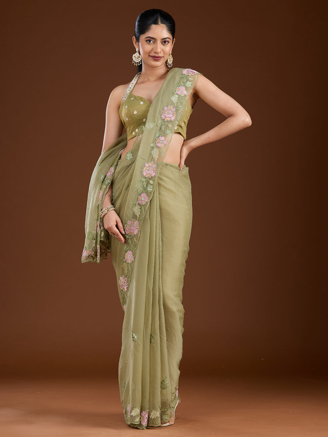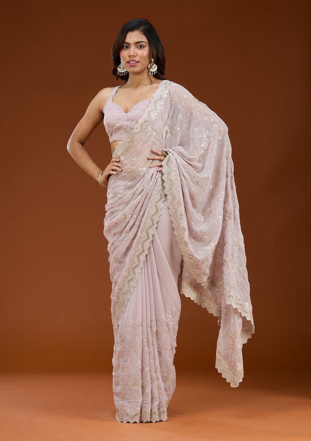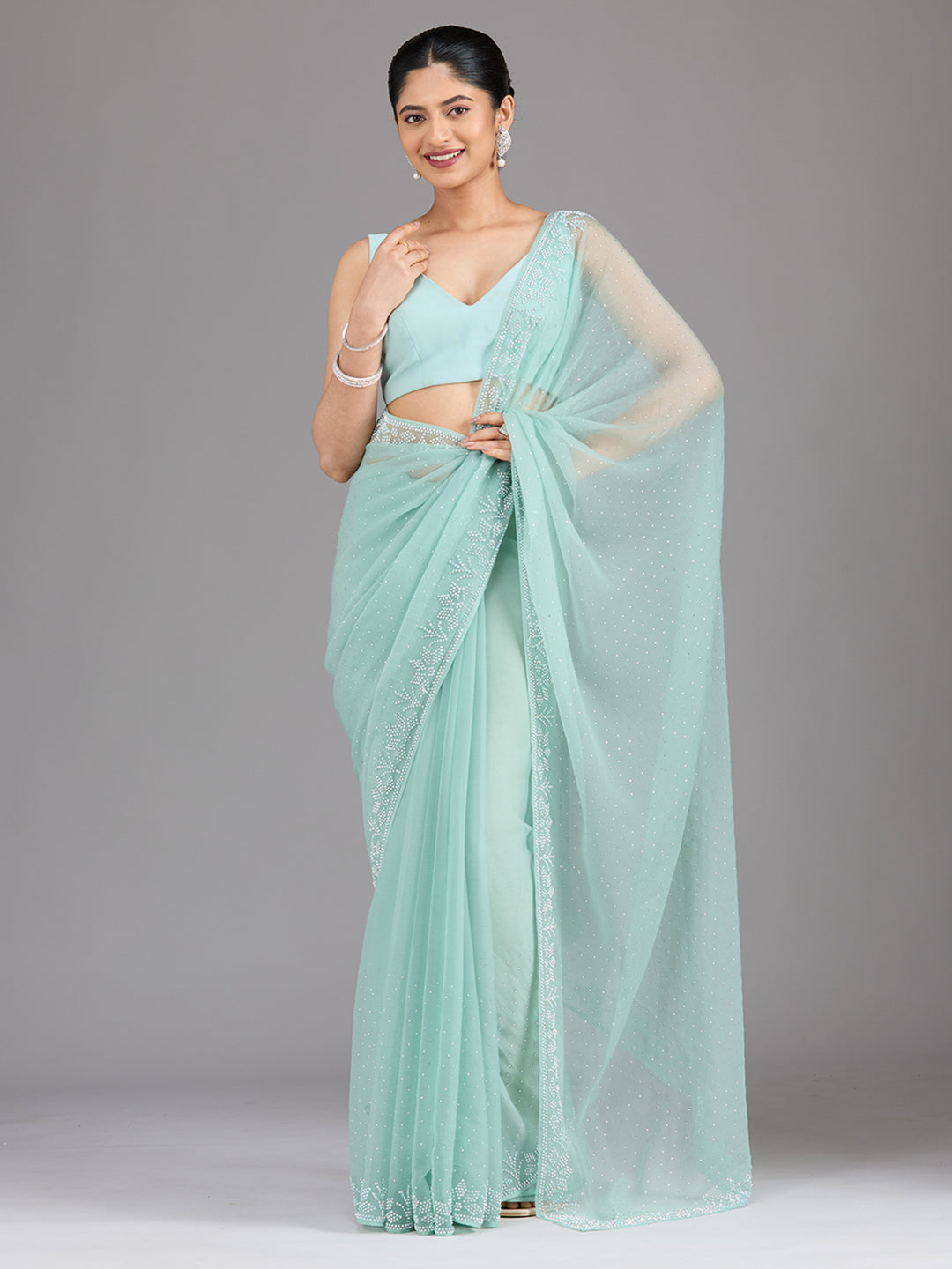 Select this gorgeous, lightweight, flowy fabric for a summer saree look and embrace the utmost comfort effortlessly. Our georgette sarees are adorned with minimal stone and sequin work, offering you a dazzling glow while maintaining comfort.