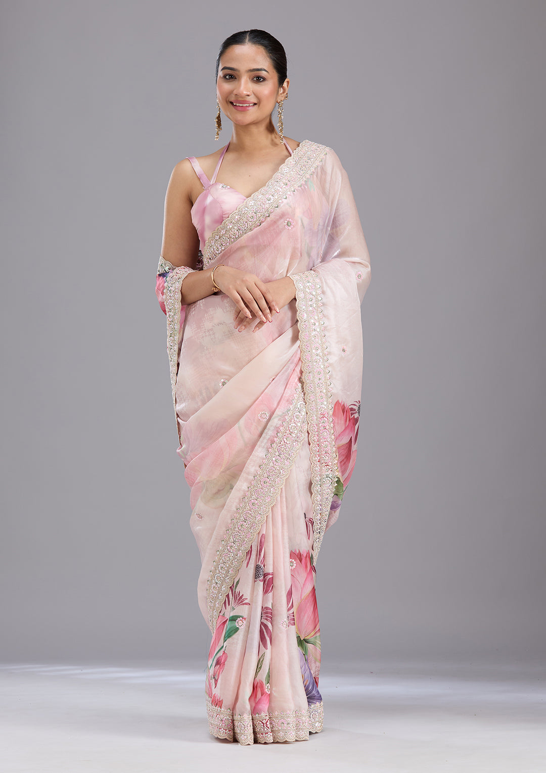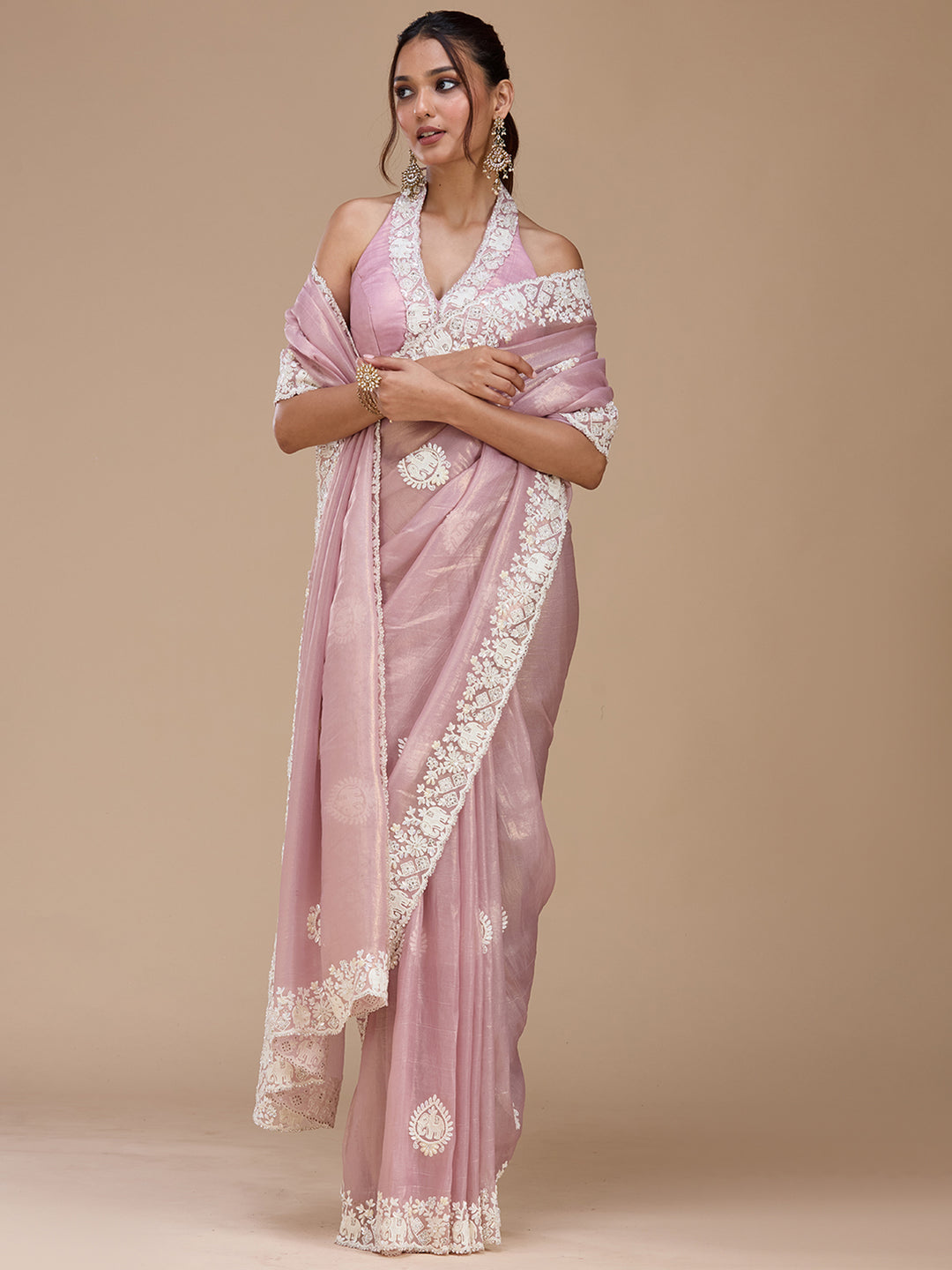 | Baby Pink Stonework Satin Saree | ₹ 3,192 | |