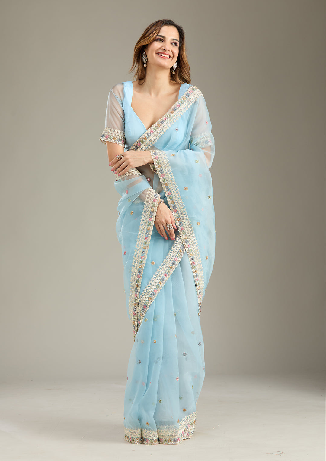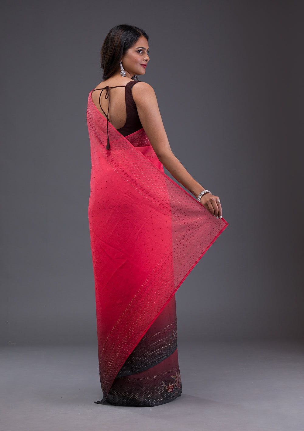 Select this gorgeous, lightweight, flowy fabric for a summer saree look and embrace the utmost comfort effortlessly. Our georgette sarees are adorned with minimal stone and sequin work, offering you a dazzling glow while maintaining comfort.