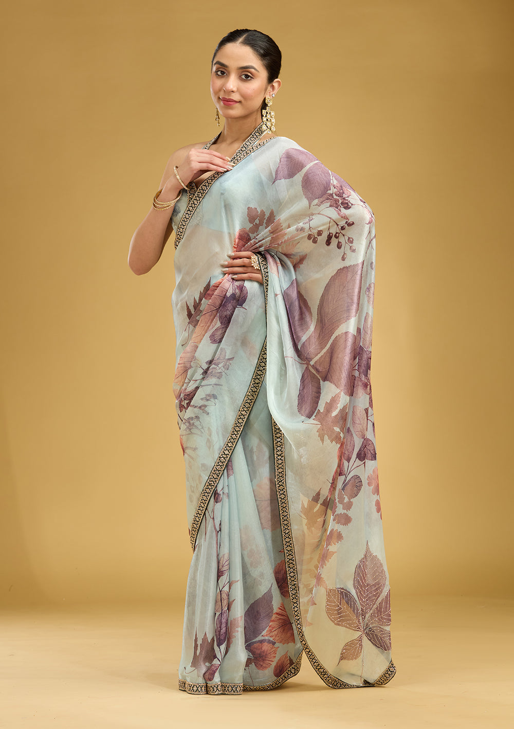 | Sky Blue Stonework (Gold) Chiffon Saree | ₹ 3,493 | |