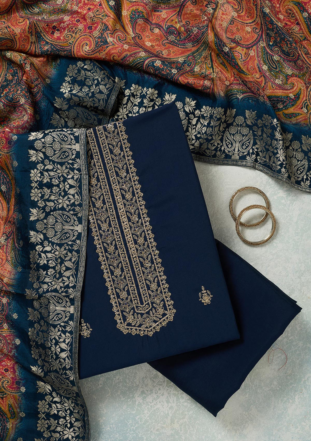 You do not have to stick to the assembled unstitched suit set you got. You can mix and match with different colours and patterns to make the design stand out in a unique way. Selecting the right dupatta is one way to elevate your salwar suit, adding an extra layer of elegance and charm.