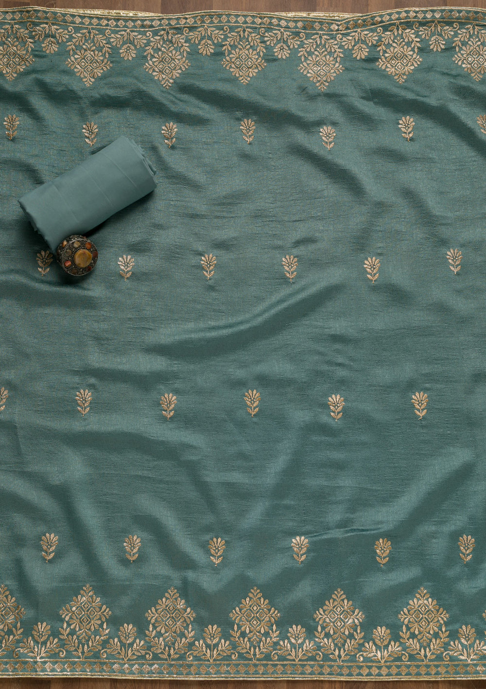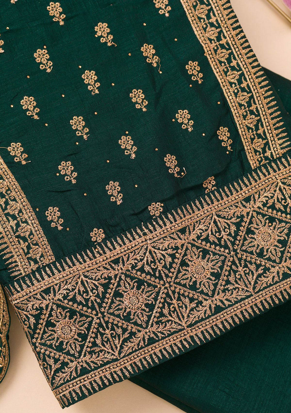 | Green Zariwork (Gold) Tissue Unstitched Salwar Suit | ₹ 2,392 | |