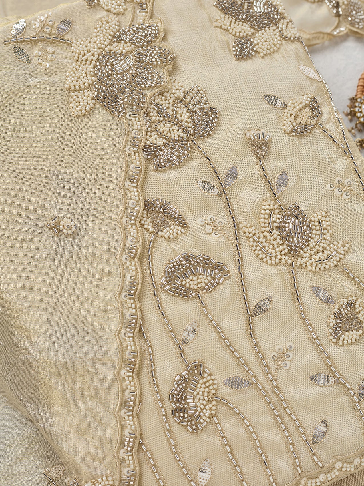 Beige Cutdana Tissue Unstitched Salwar Suit