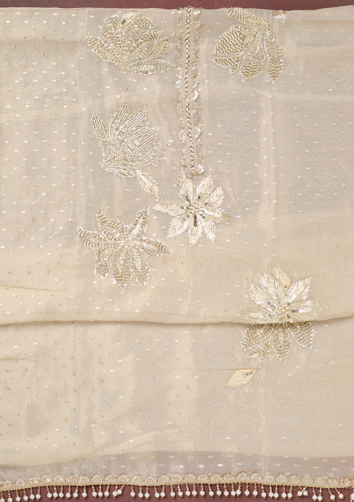 Beige Mirrorwork Tissue Unstitched Salwar Suit