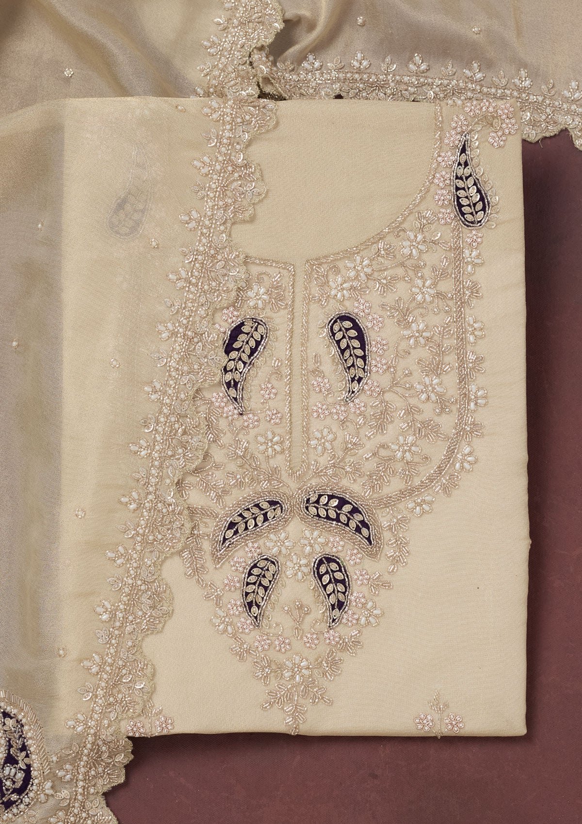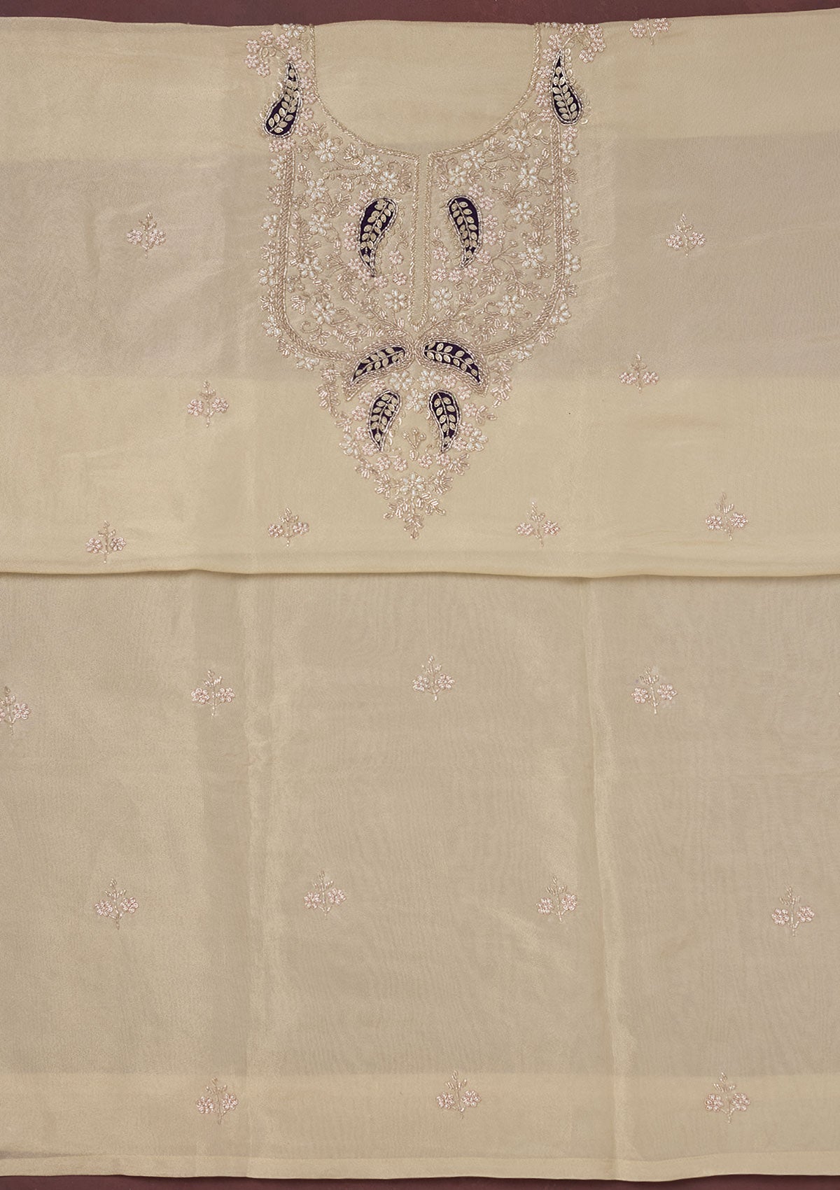 Cream Cutdana Organza Unstitched Salwar Suit