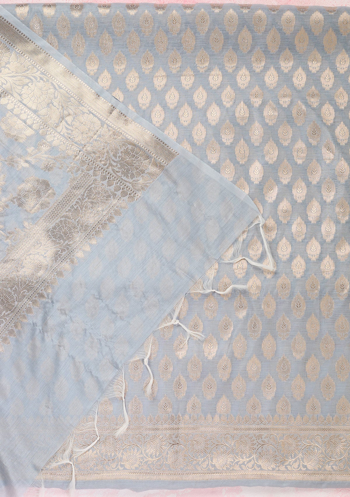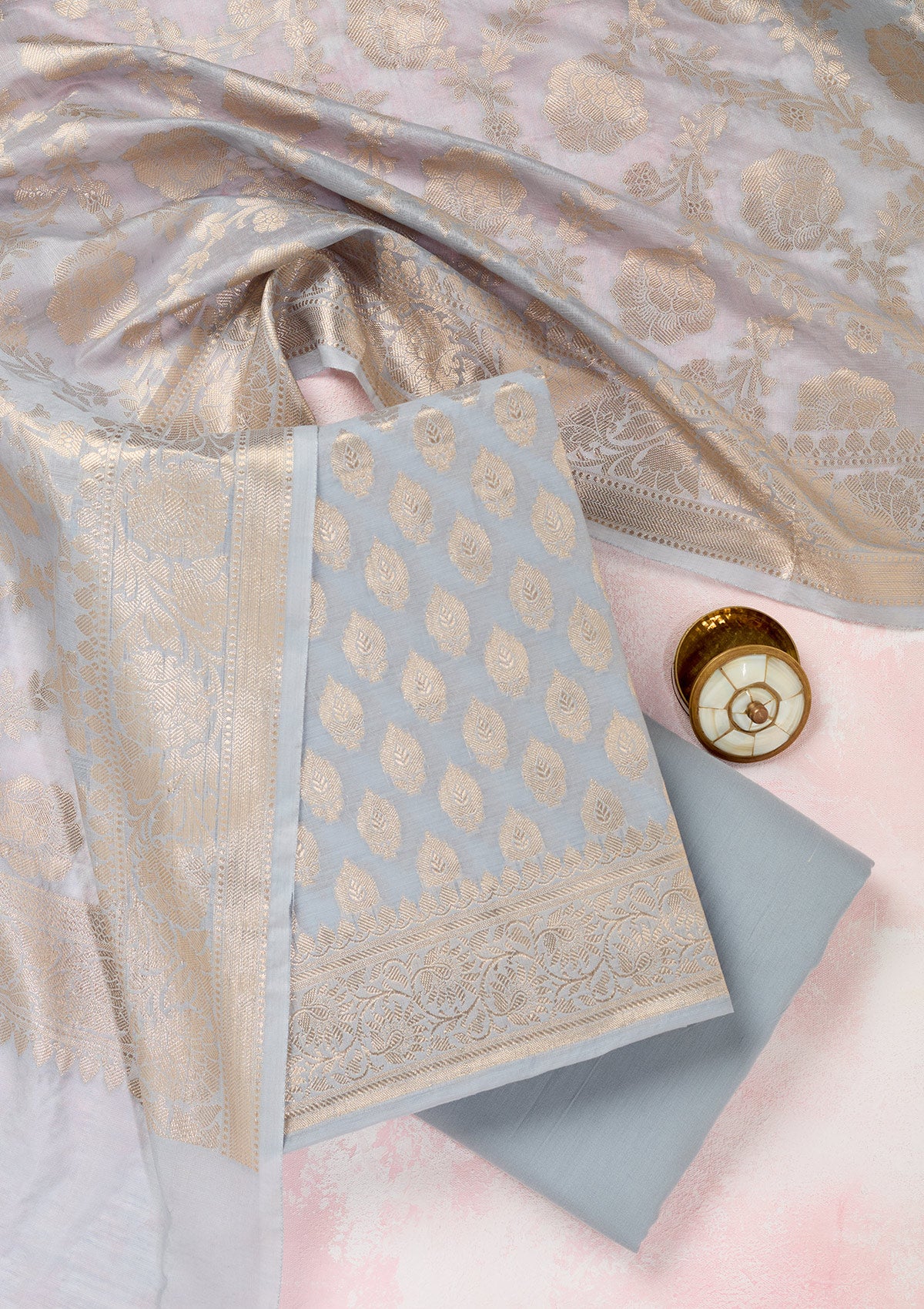 Grey Zariwork Banarasi Unstitched Salwar Suit