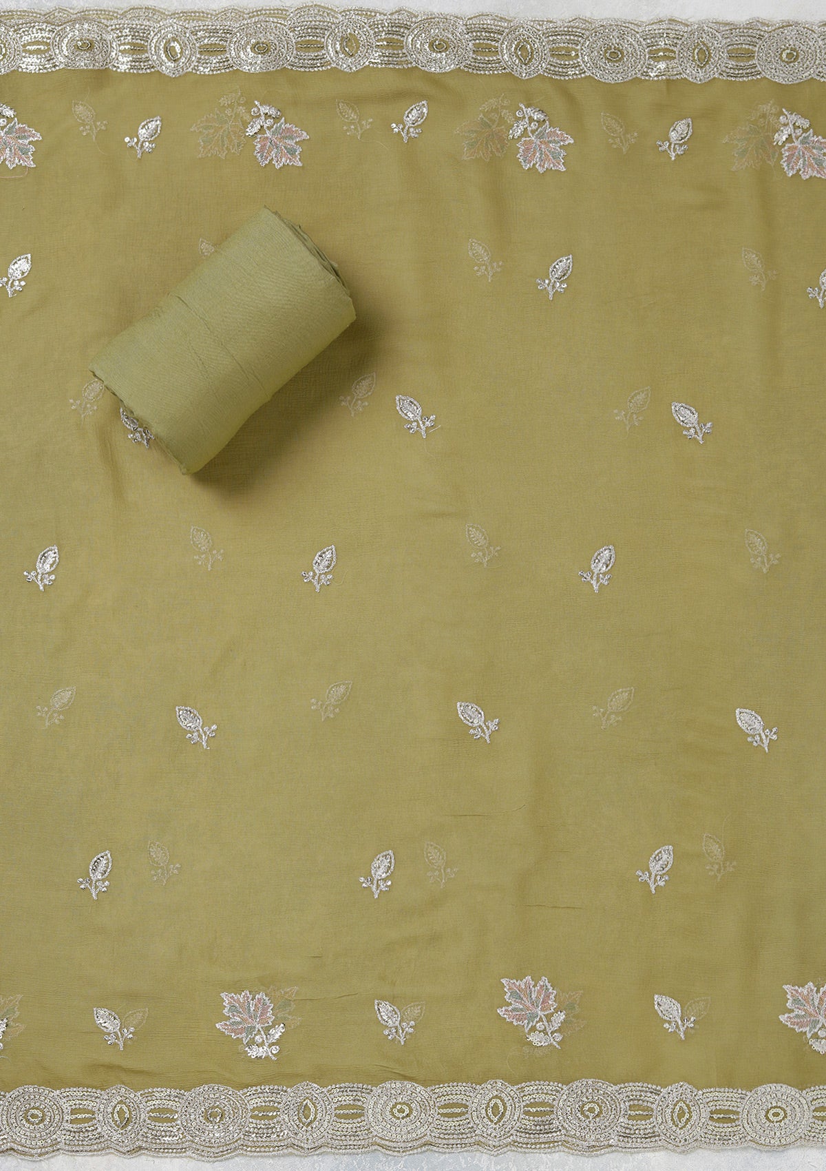Mehendi Mirrorwork Organza Unstitched Salwar Suit