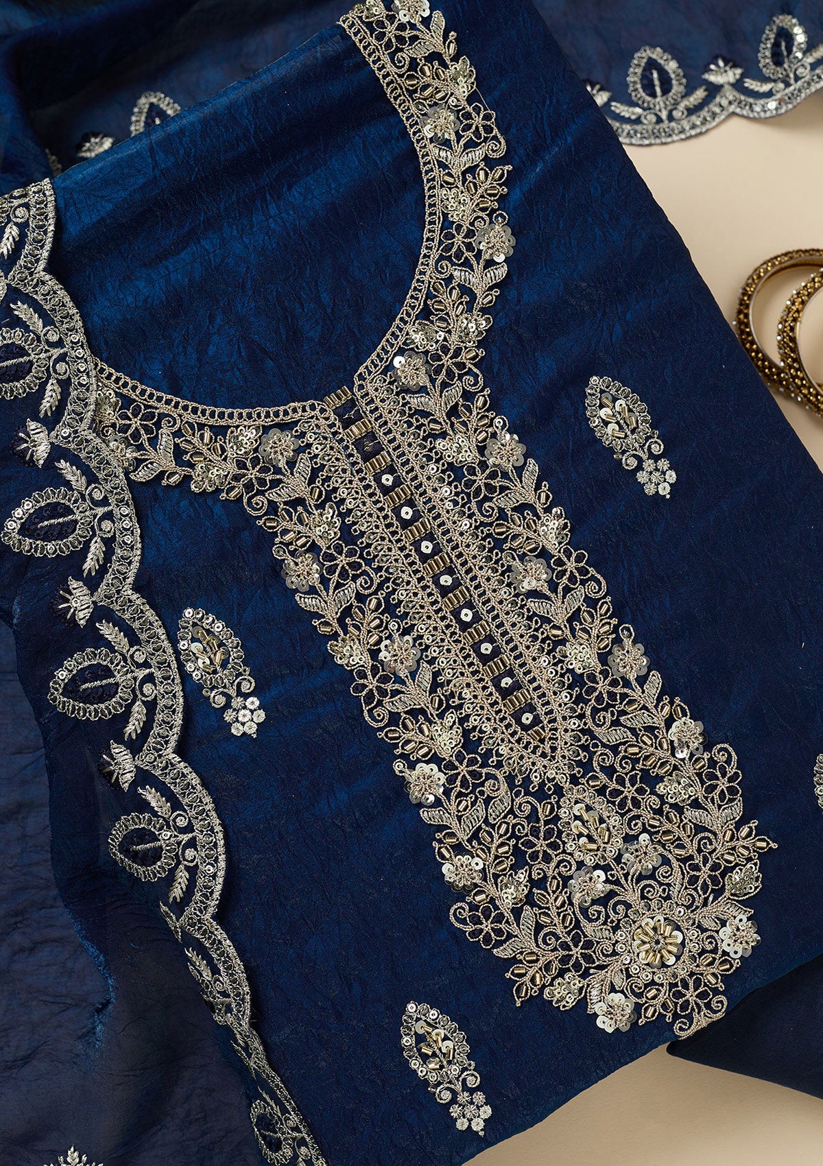 Navy Blue Cutdana Soft Raw Silk Unstitched Salwar Suit