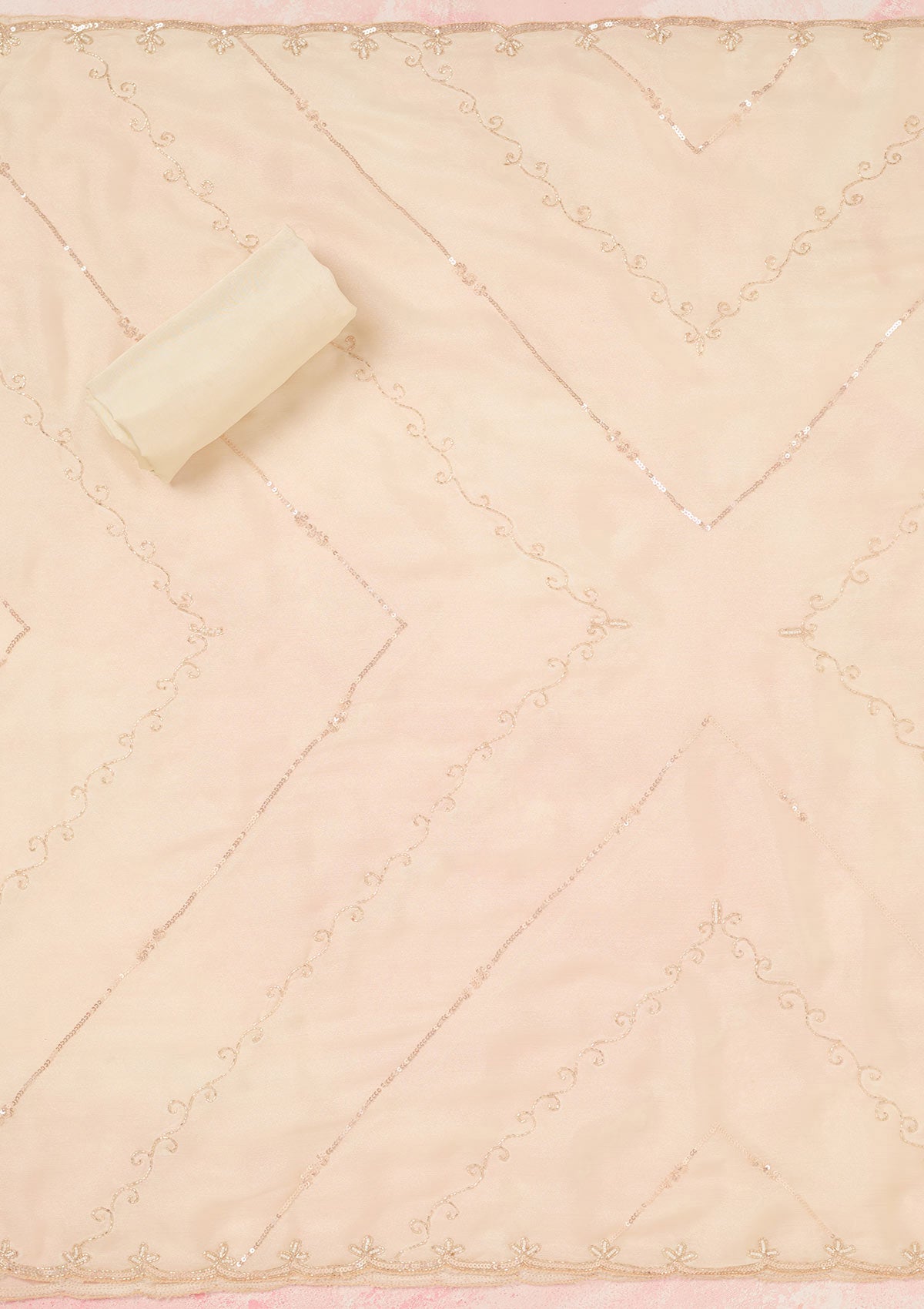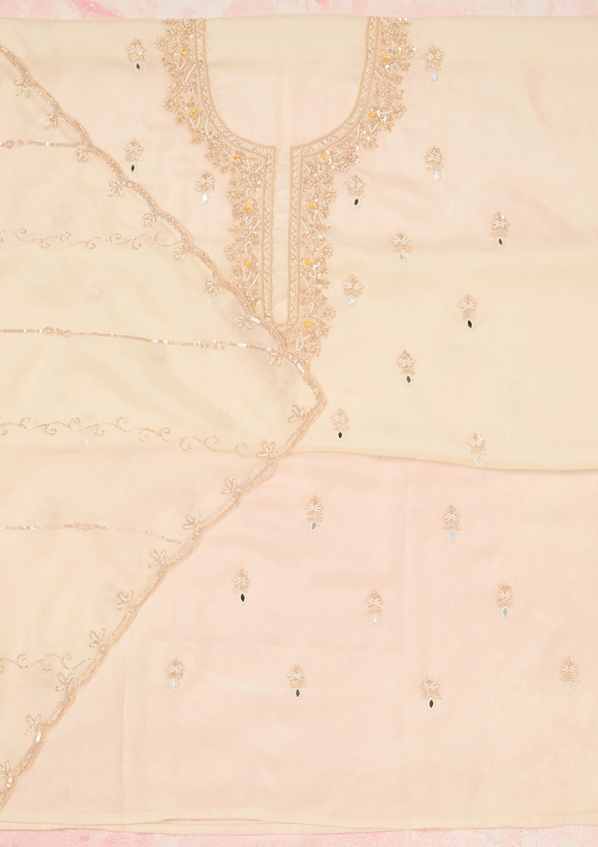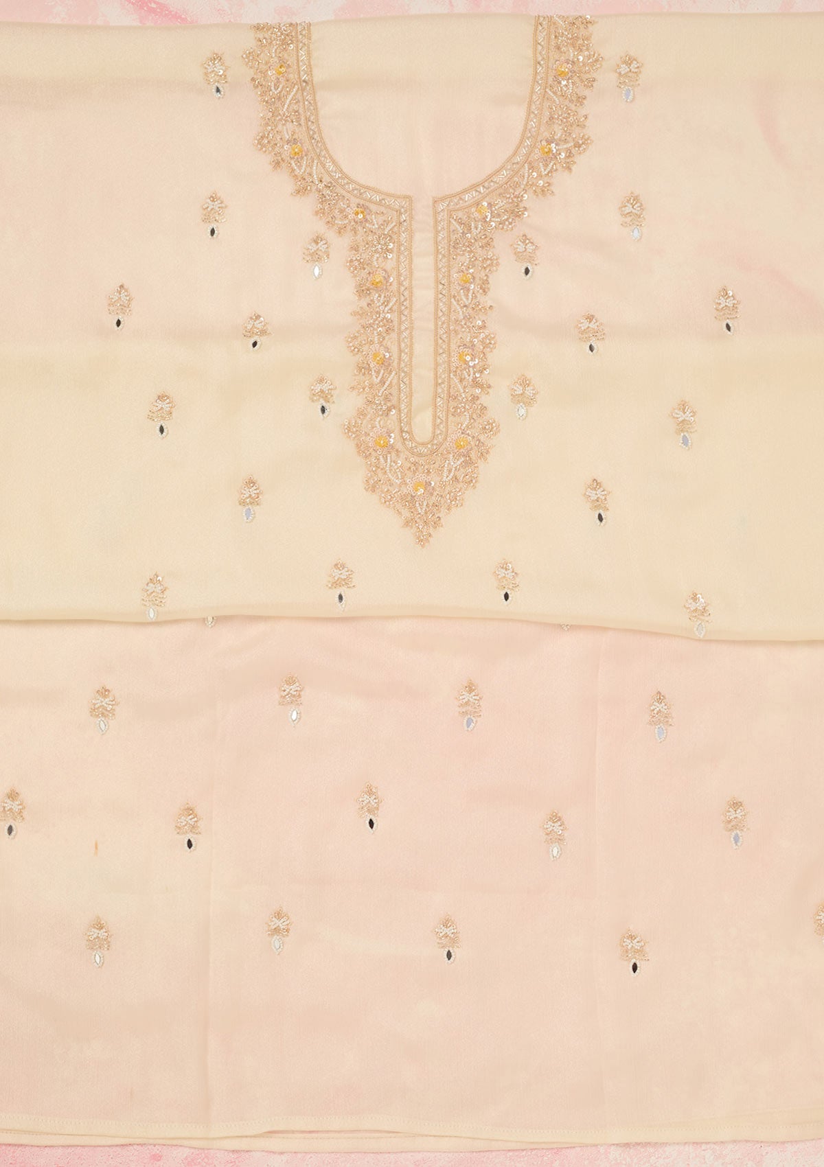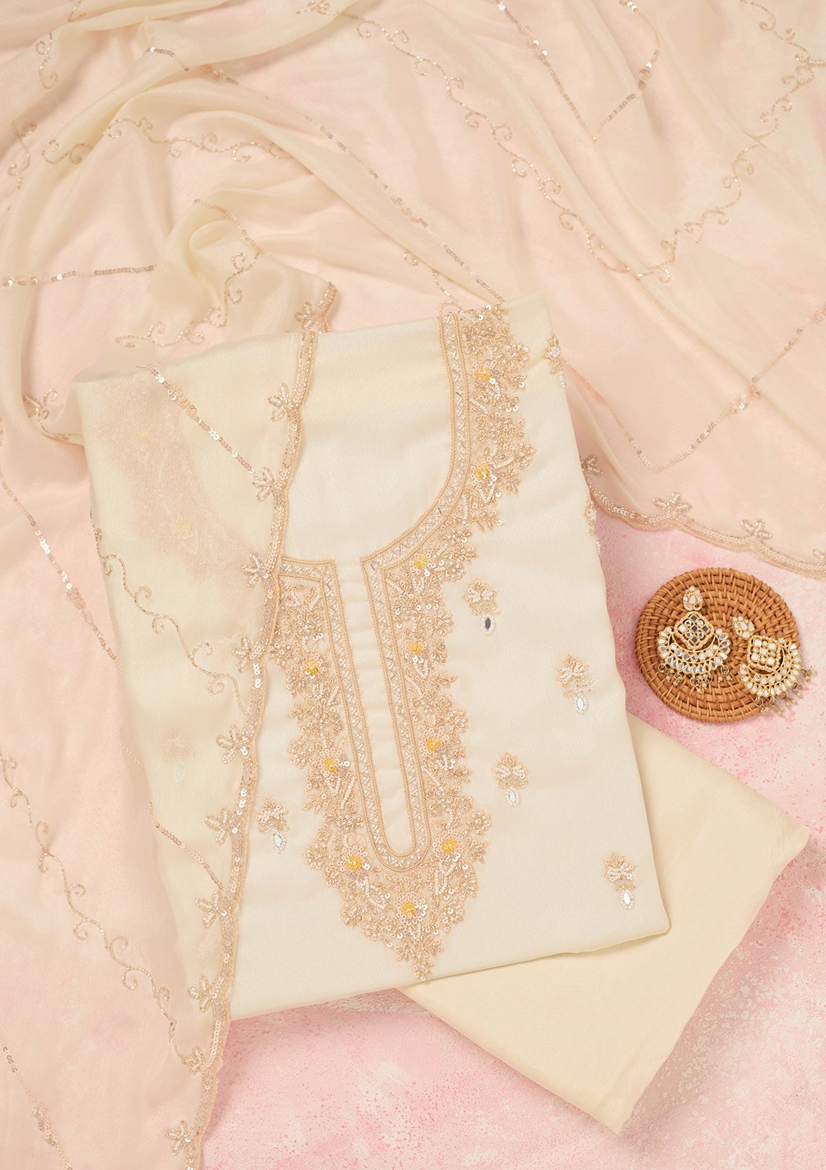 Off White Cutdana Chinon Unstitched Salwar Suit