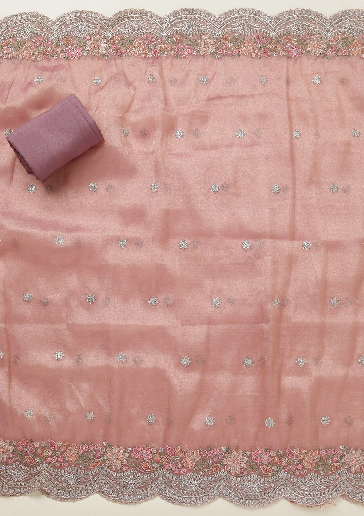 Onion Pink Salwar Suit in Tissue fabric. The Salwar Suit is embellished with Threadwork embroidery. Accompanied with a bottom and dupatta. Comes with the Koskii promise of premium quality.