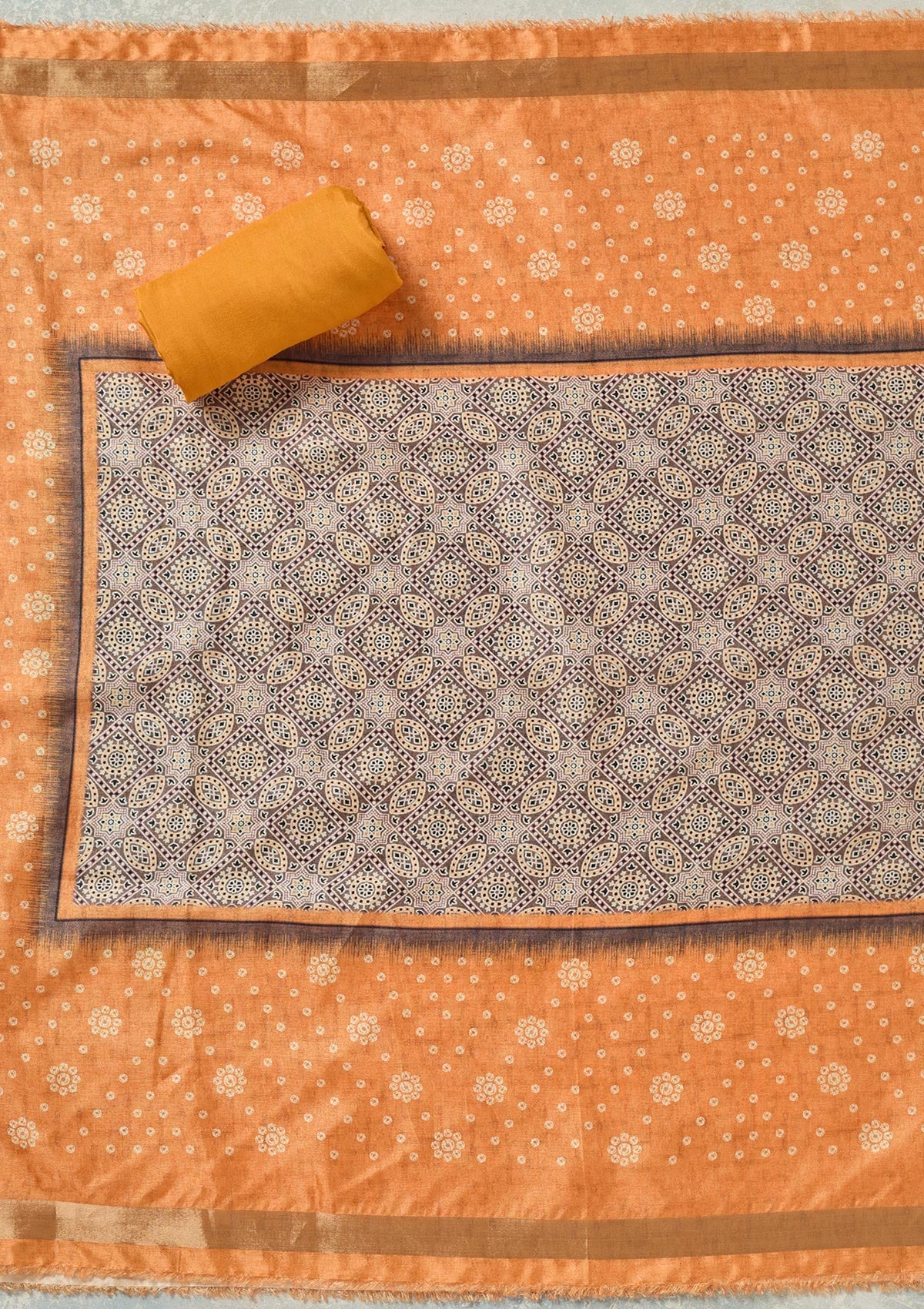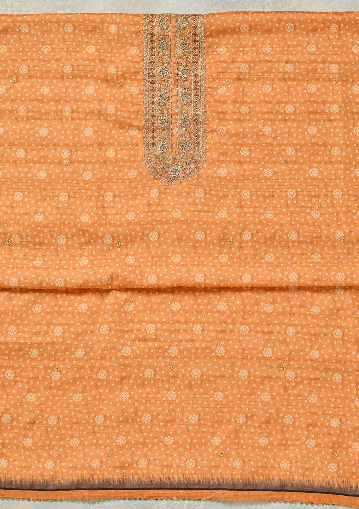 Orange Threadwork Chanderi Unstitched Salwar Suit