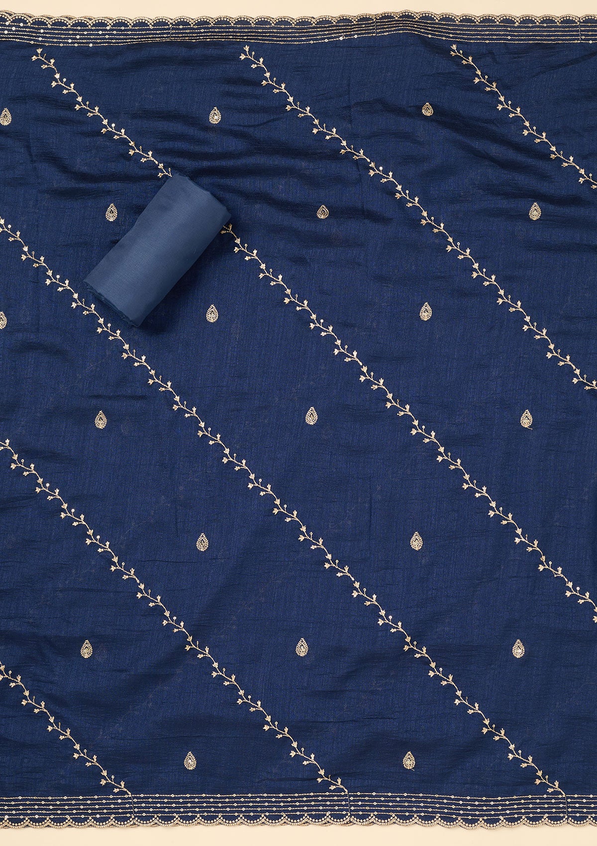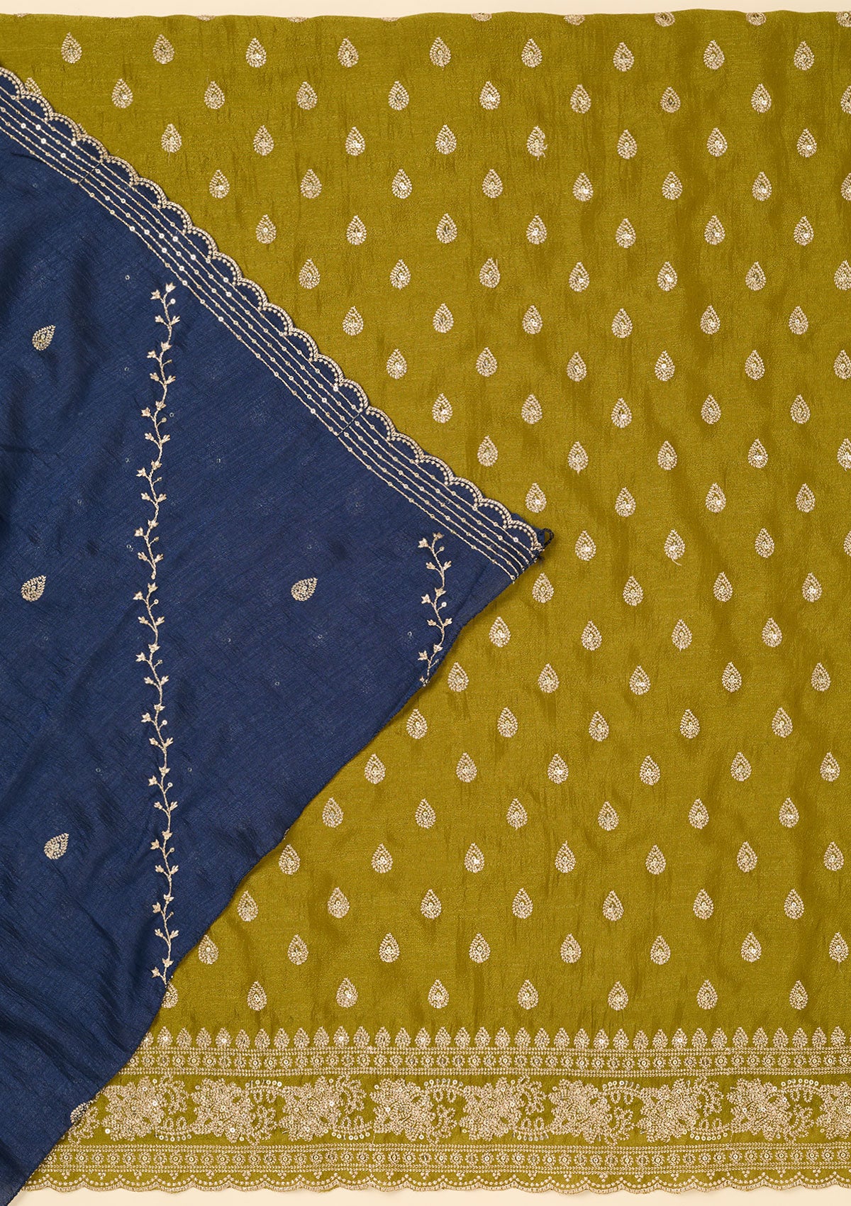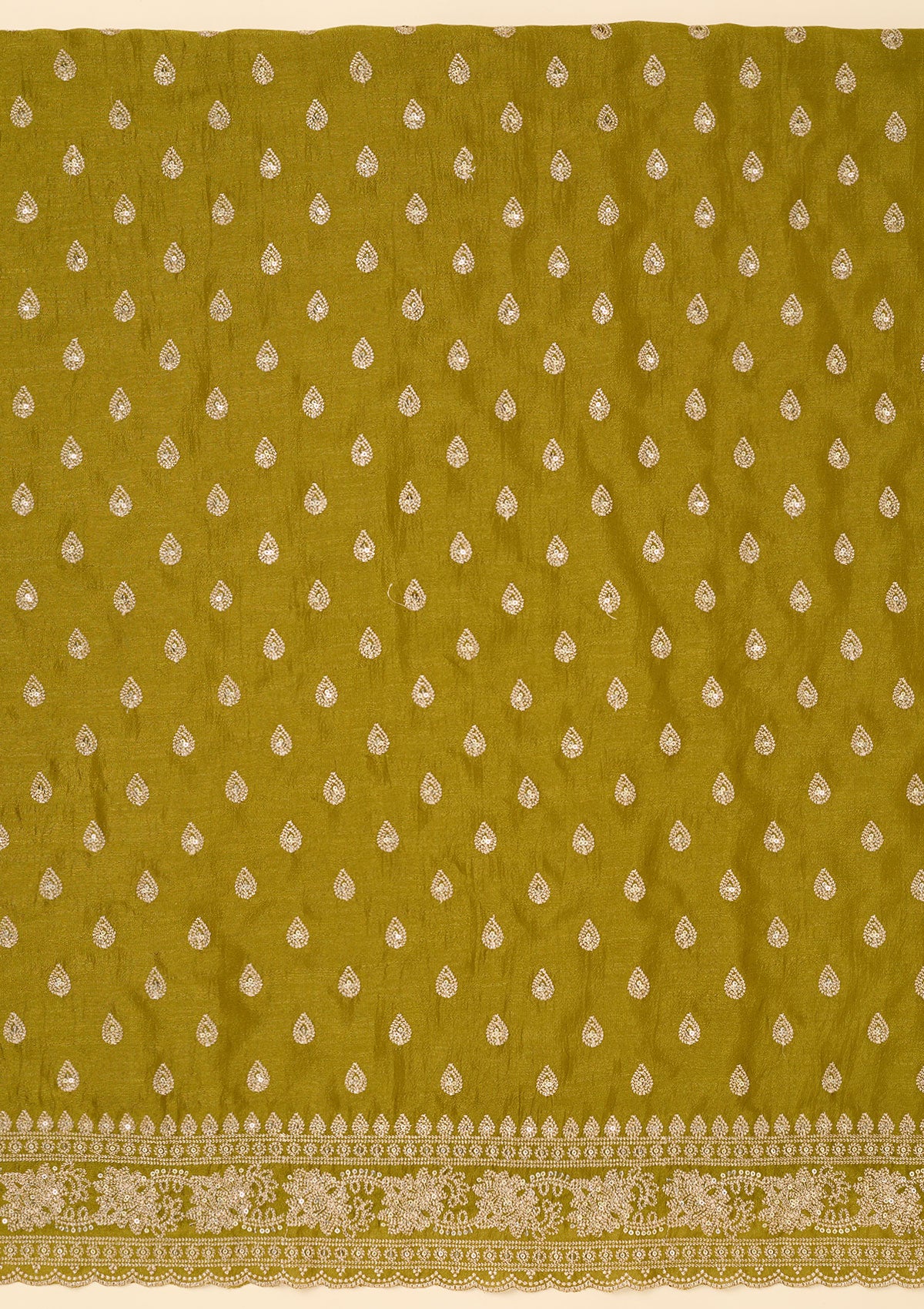 Parrot Green Zariwork Soft Raw Silk Unstitched Salwar Suit