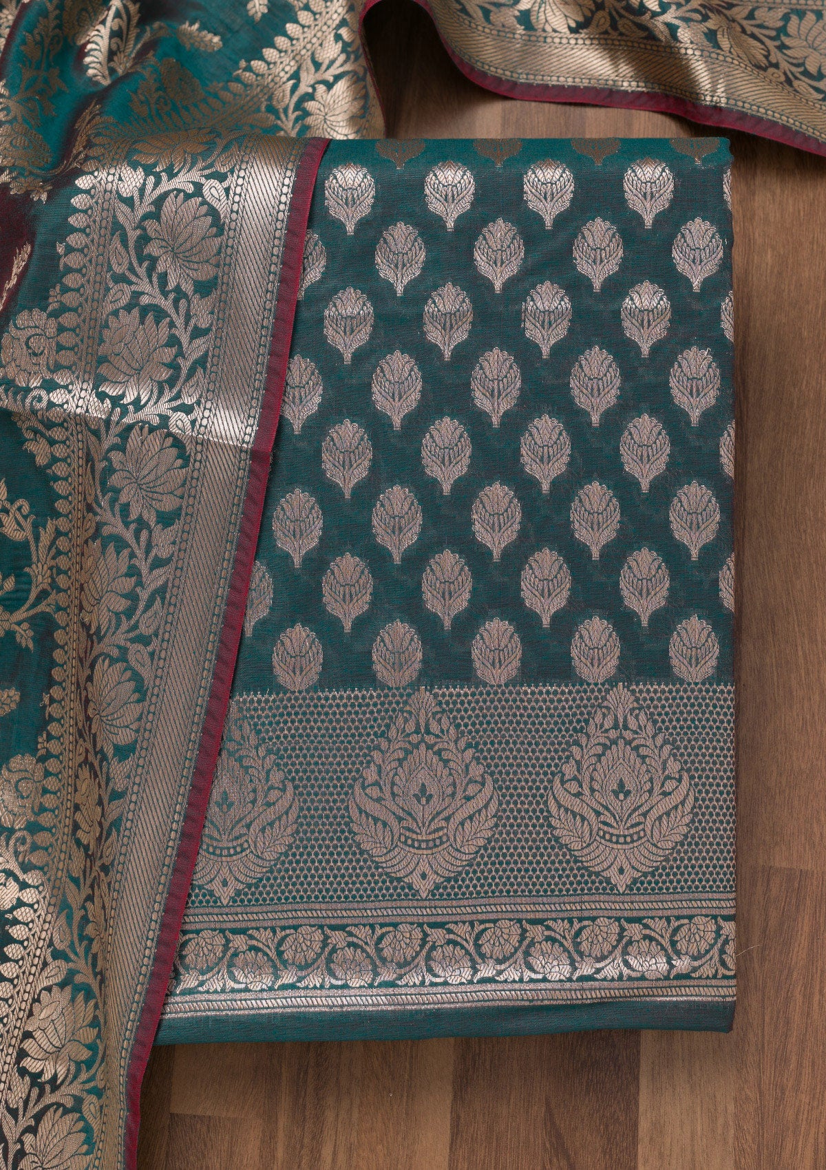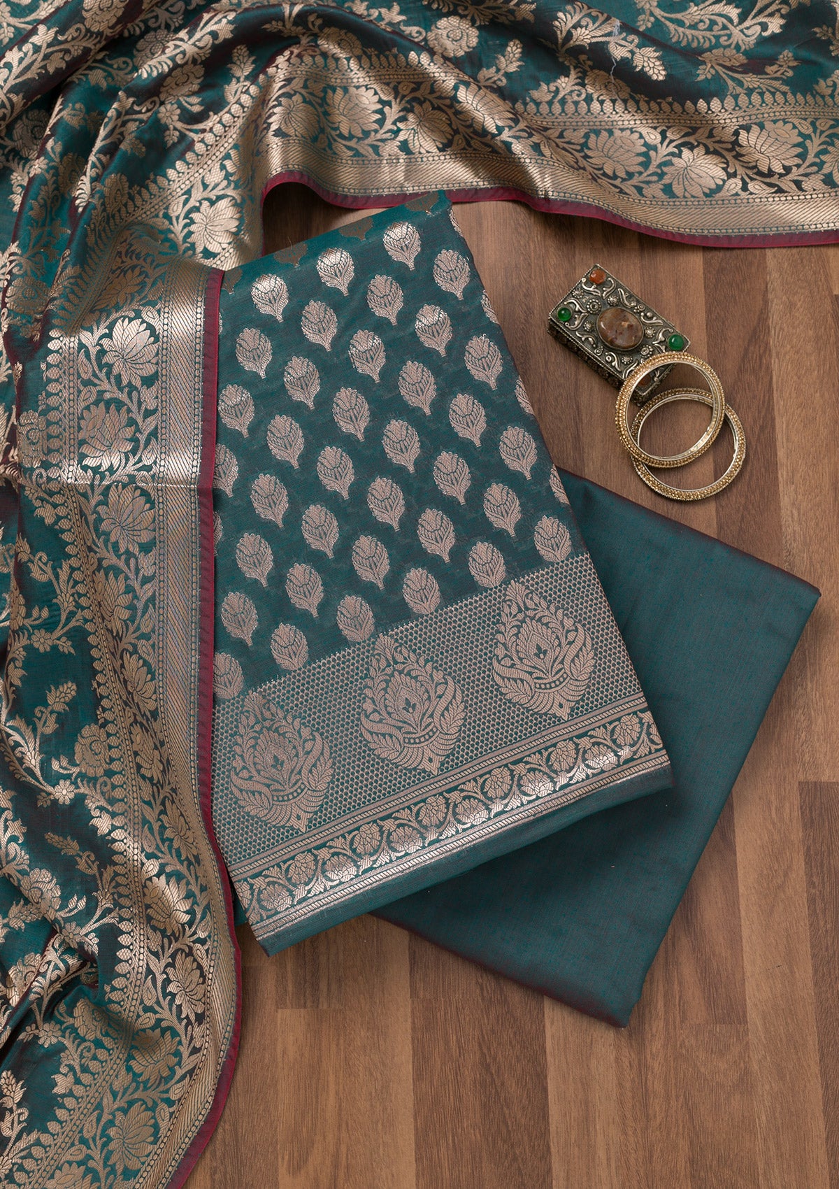 Peacock Blue Zariwork Banarasi Unstitched Salwar Suit