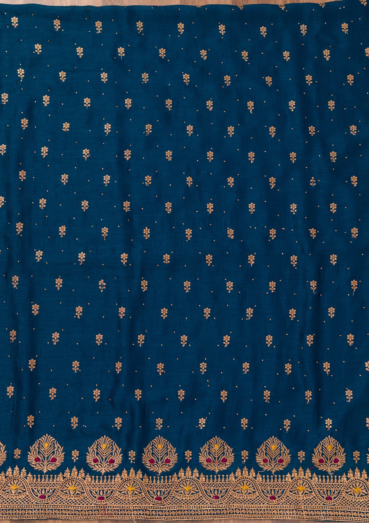 Peacock Blue Zariwork Raw Silk Unstitched Salwar Suit