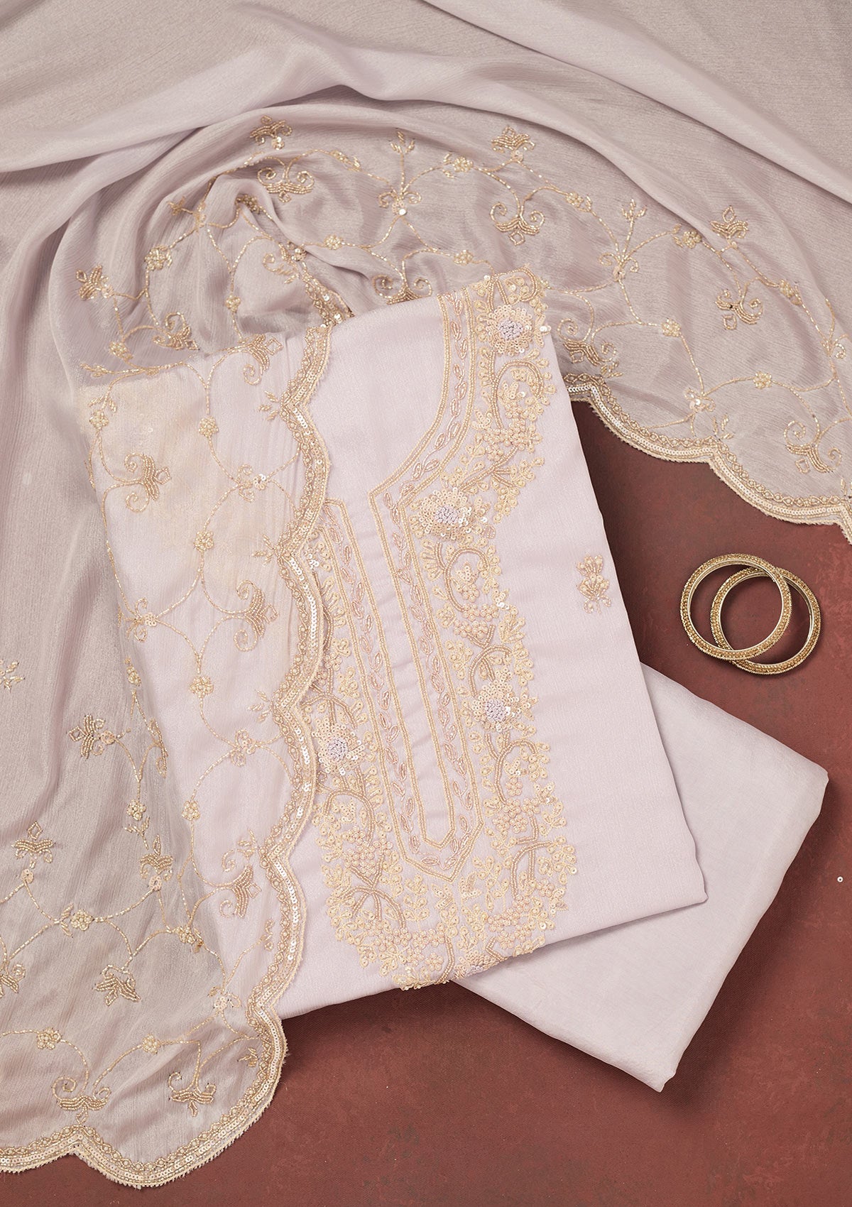 Purple Cutdana Chinon Unstitched Salwar Suit