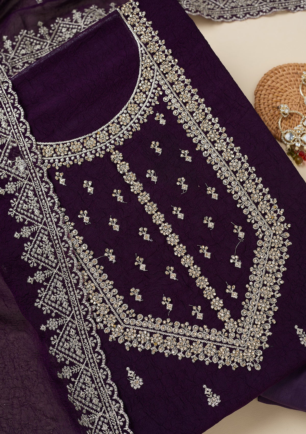 Purple Zardozi (Gold) Soft Raw Silk Unstitched Salwar Suit