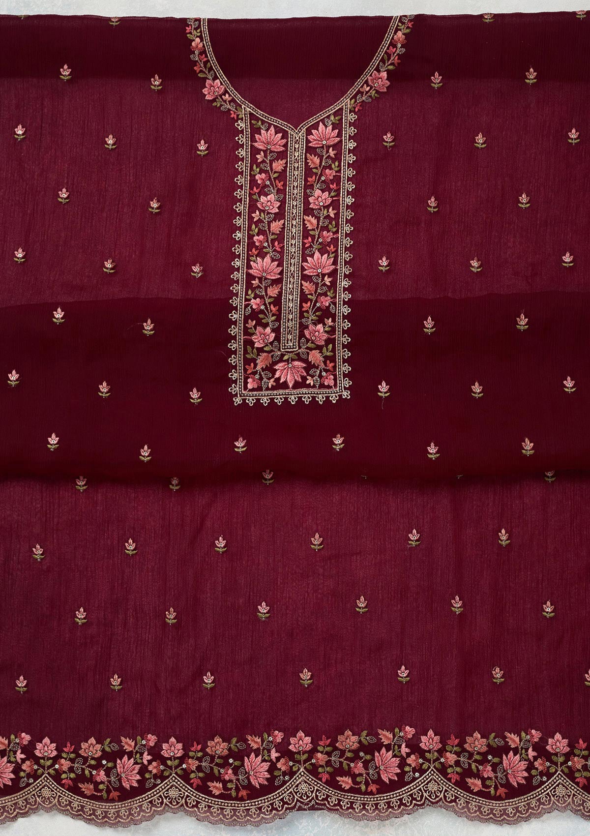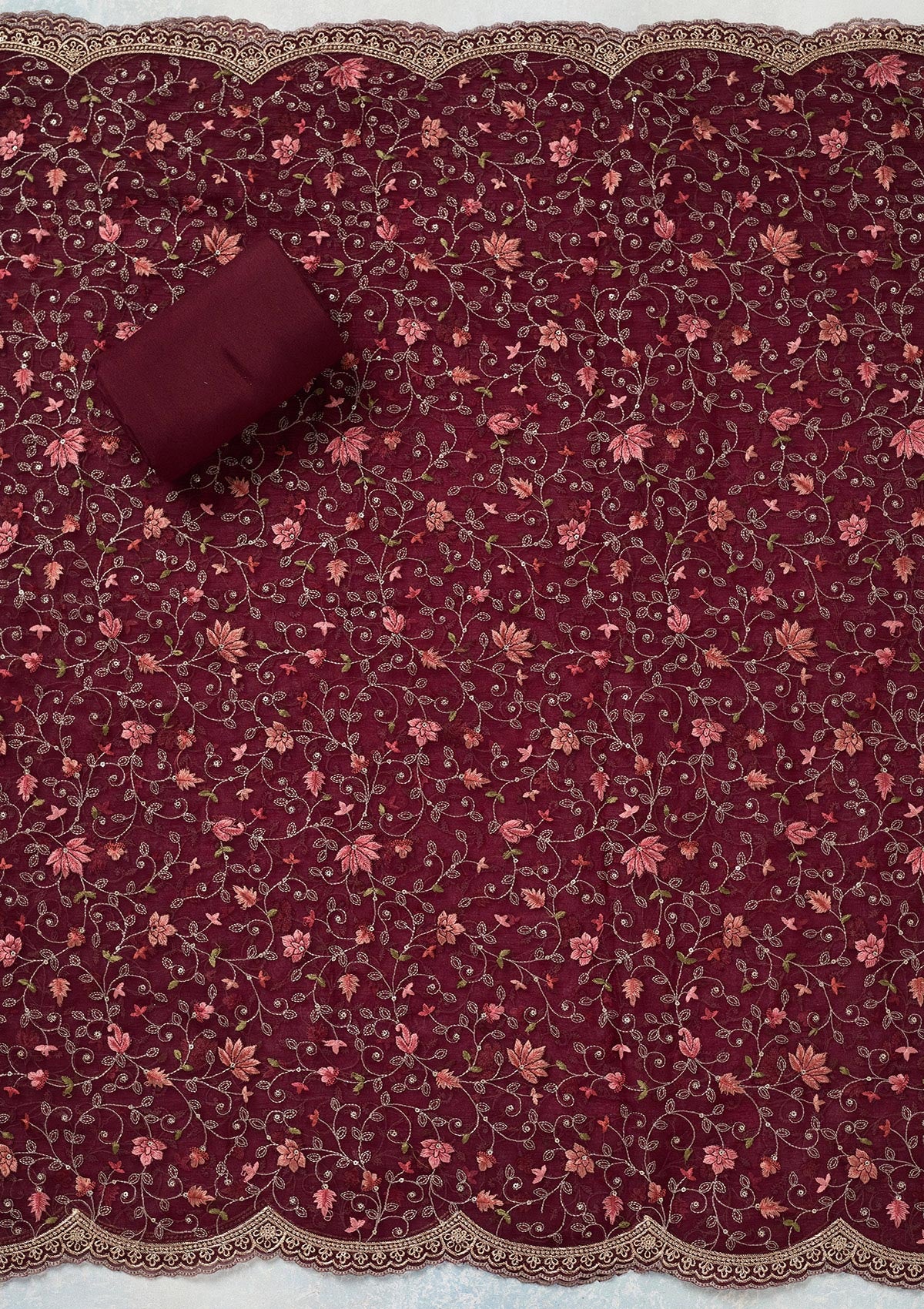 Wine Threadwork Tissue Unstitched Salwar Suit