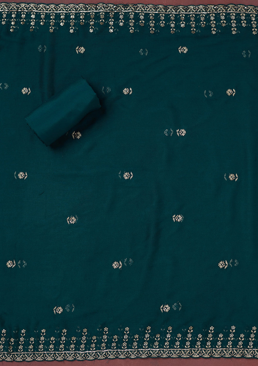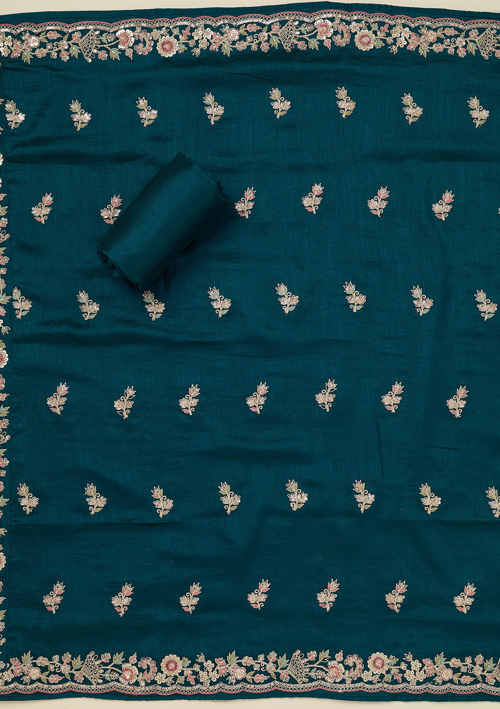 | Peacock Blue Zariwork (Gold) Soft Raw Silk Unstitched Salwar Suit | ₹ 3,192 | |