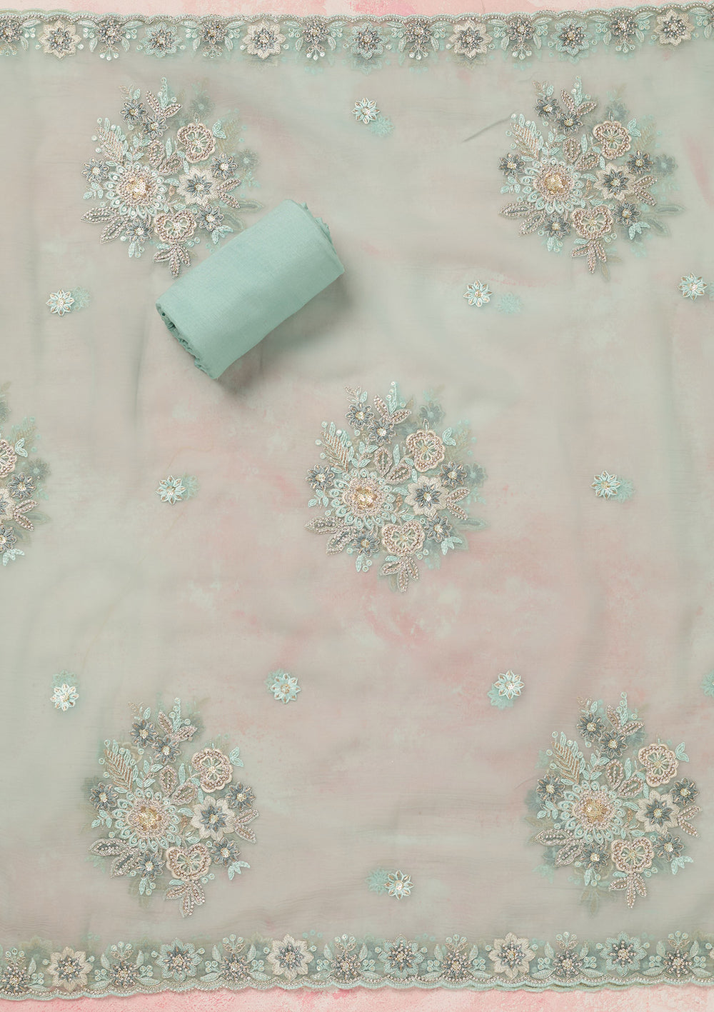| Pista Green Zariwork Organza Unstitched Salwar Suit | ₹ 4,543 | |