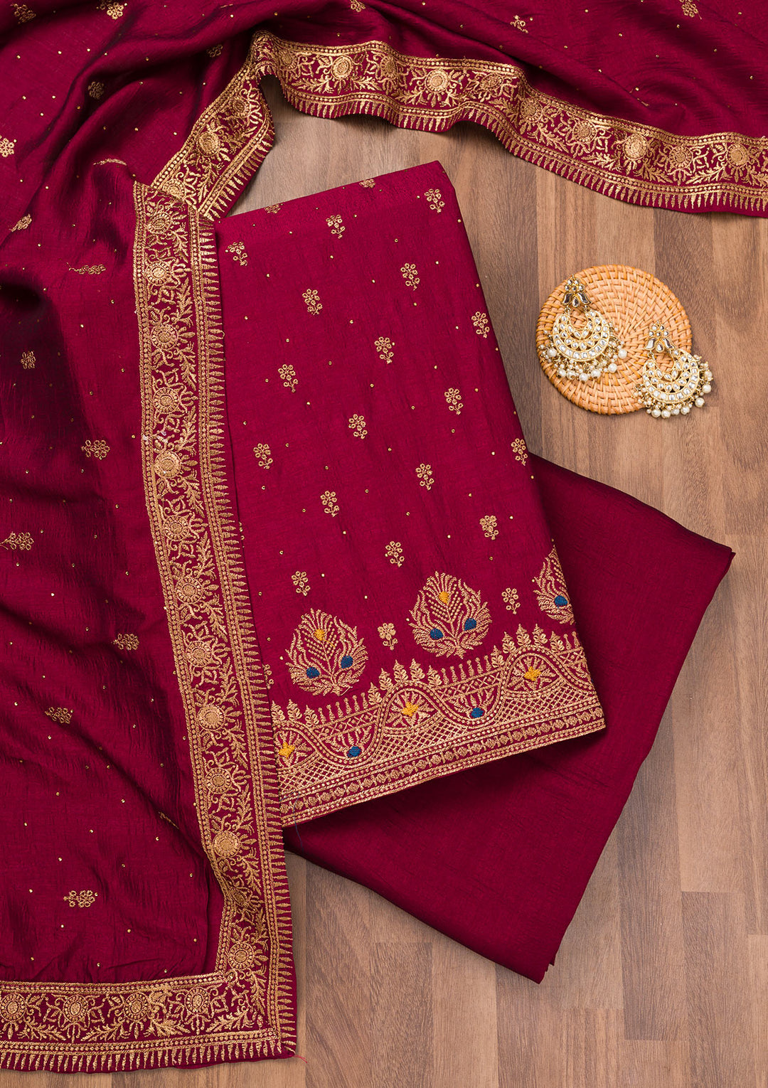 | Maroon Zariwork Raw Silk Unstitched Salwar Suit | ₹ 2,392 | |