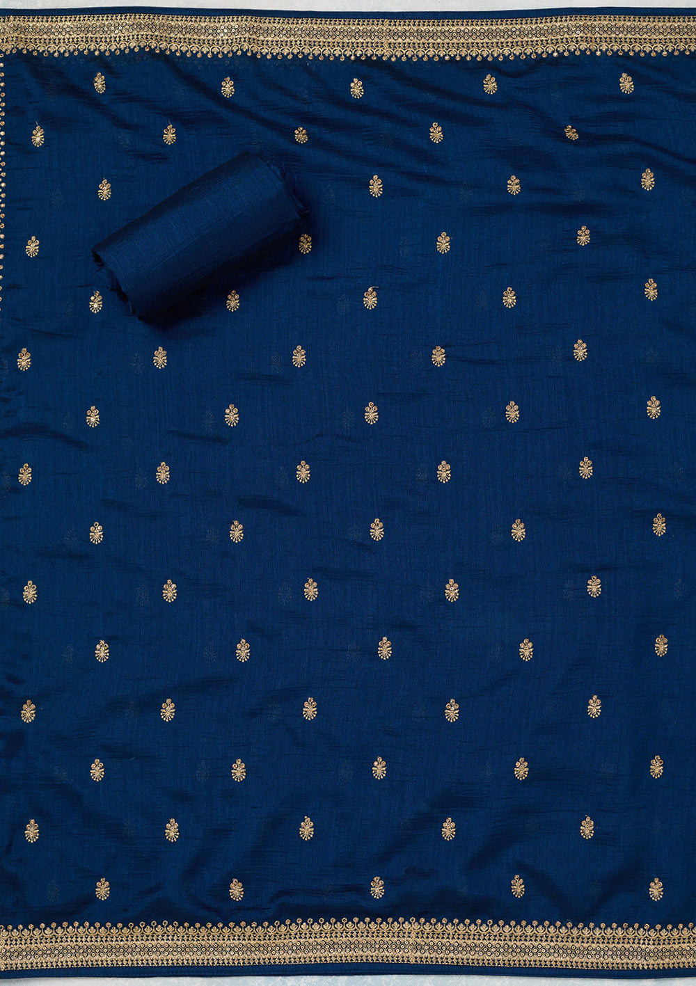 | Turquoise Blue Zariwork (Gold) Dola Silk Unstitched Salwar Suit | ₹ 4,792 | |