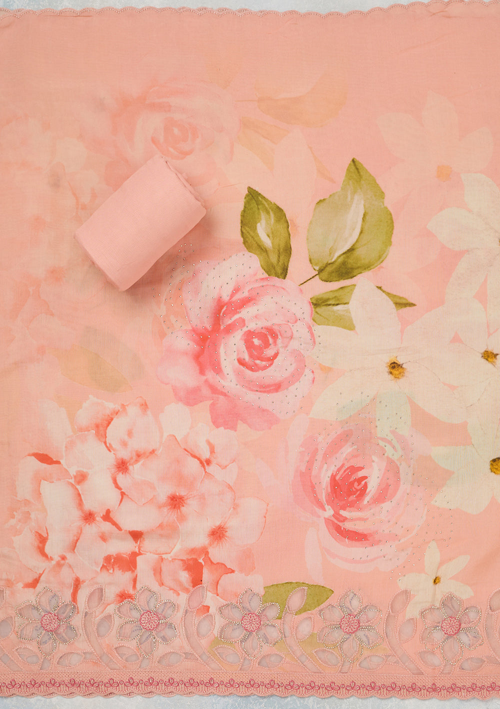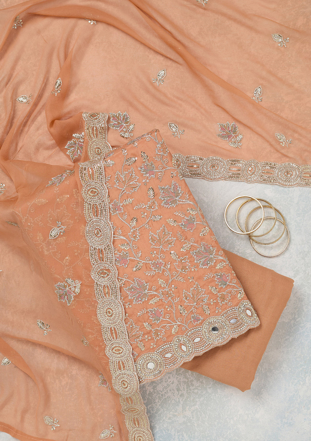 | Peach Stonework (Gold) Crepe Unstitched Salwar Suit | ₹ 3,843 | |