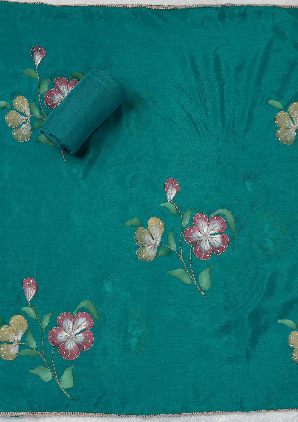 | Bottle Green Threadwork Tissue Unstitched Salwar Suit | ₹ 4,392 | |
