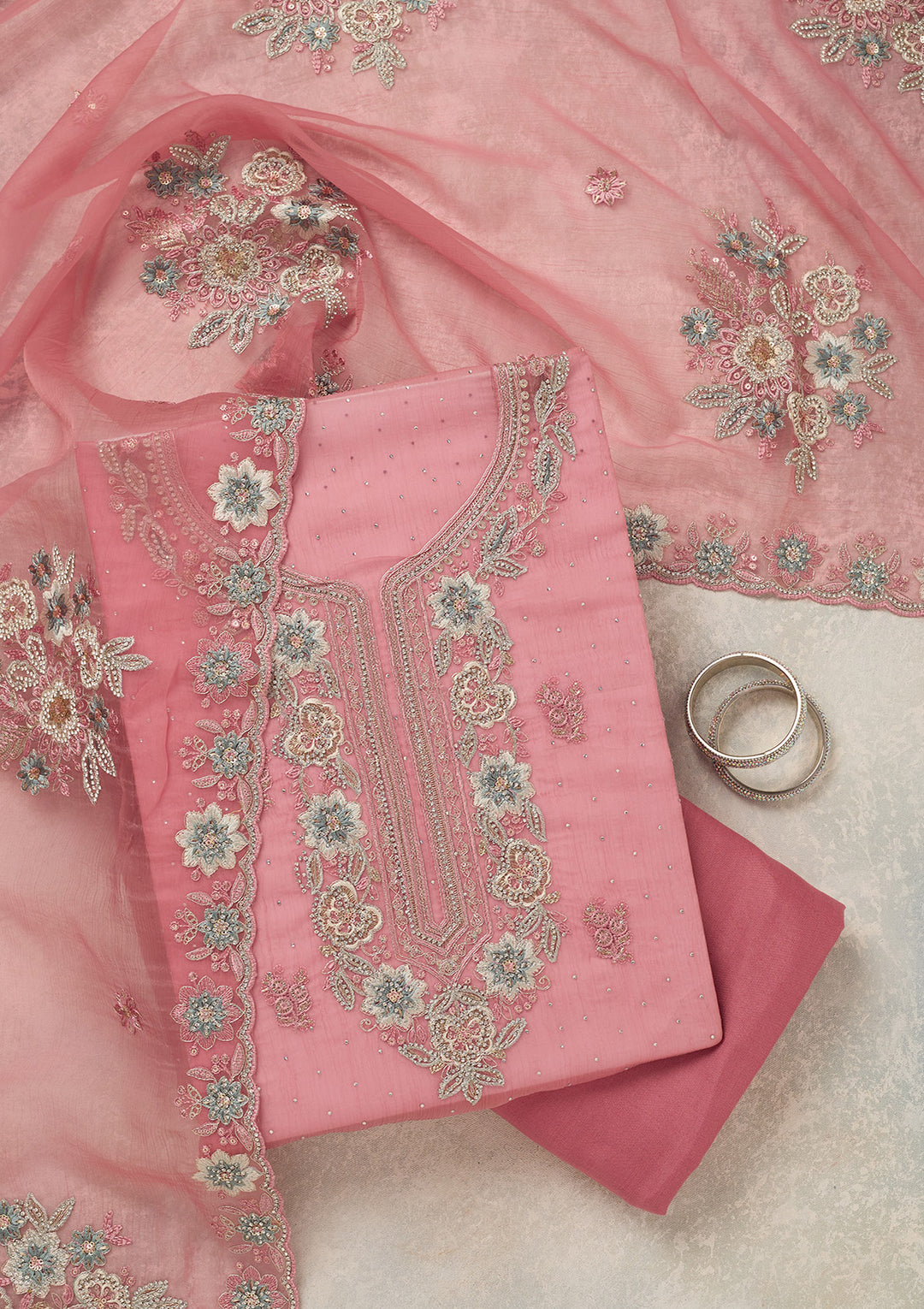 | Baby Pink Zariwork (Gold) Organza Unstitched Salwar Suit | ₹ 3,992 | |