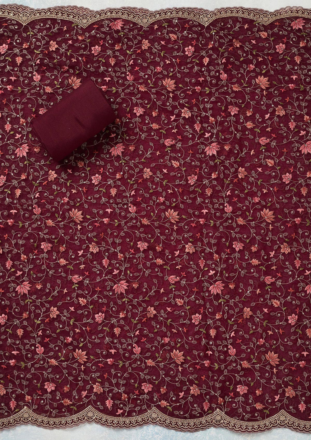 | Wine Threadwork Tissue Unstitched Salwar Suit | ₹ 4,392 | |