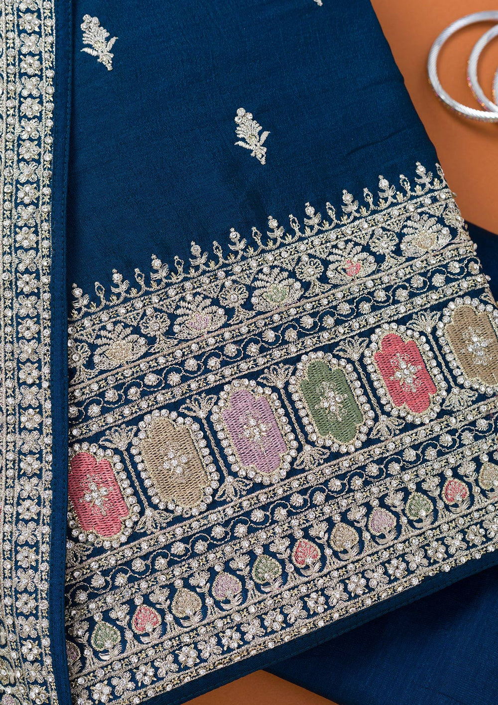 | Peacock Blue Zariwork Banarasi Unstitched Salwar Suit | ₹ 2,392 | |