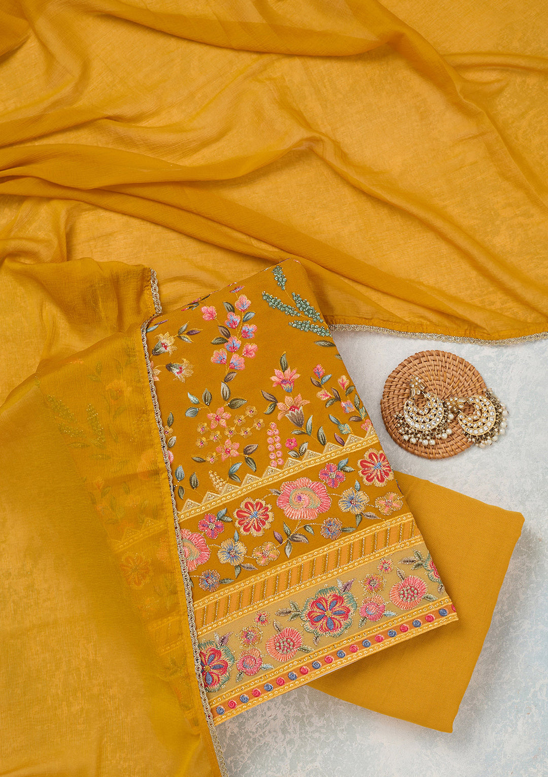 You do not have to stick to the assembled unstitched suit set you got. You can mix and match with different colours and patterns to make the design stand out in a unique way. Selecting the right dupatta is one way to elevate your salwar suit, adding an extra layer of elegance and charm.