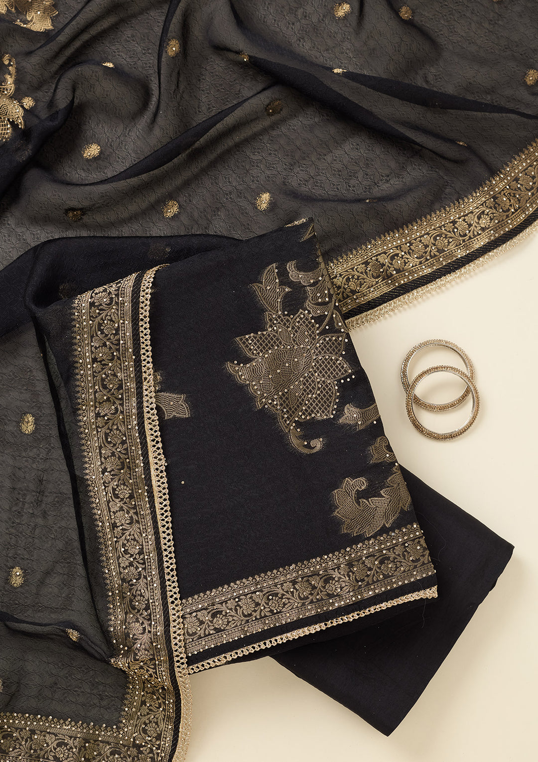 | Black Zariwork (Gold) Dola Silk Unstitched Salwar Suit | ₹ 4,792 | |