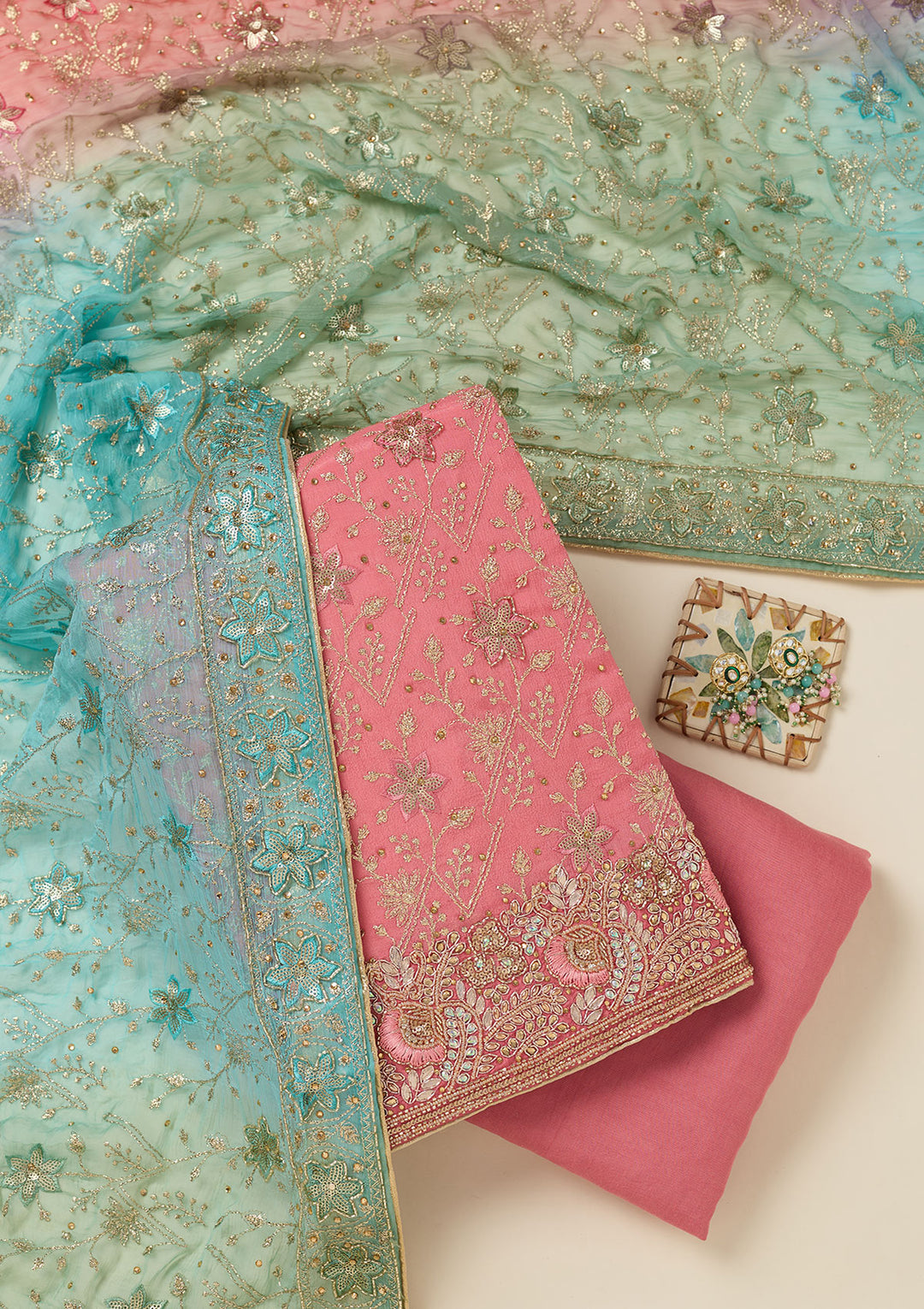 | Onion Pink Aariwork Tissue Unstitched Salwar Suit | ₹ 3,592 | |