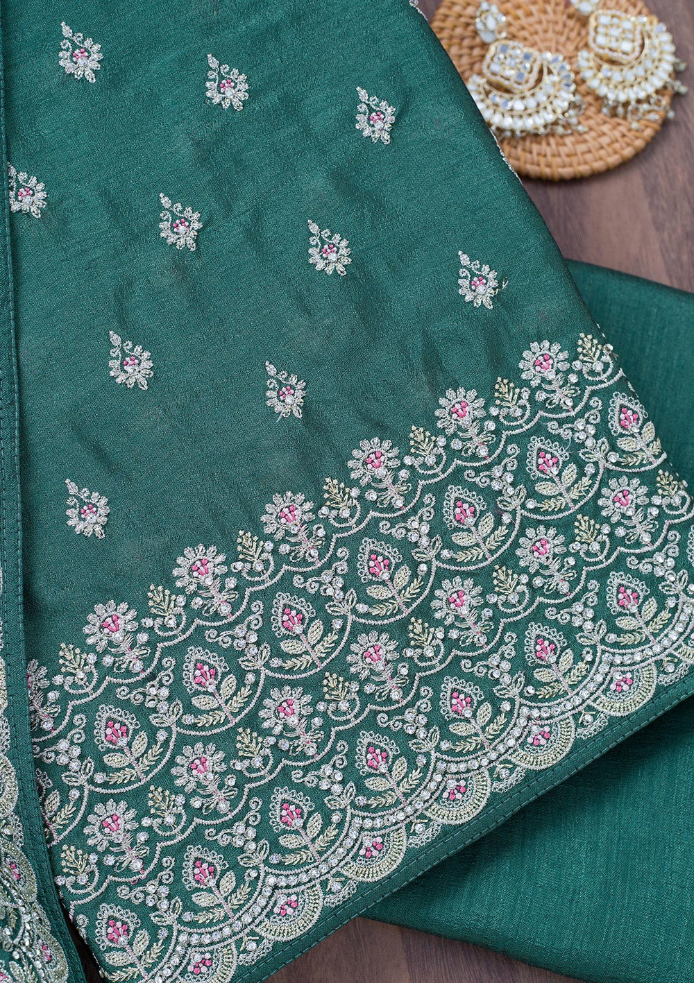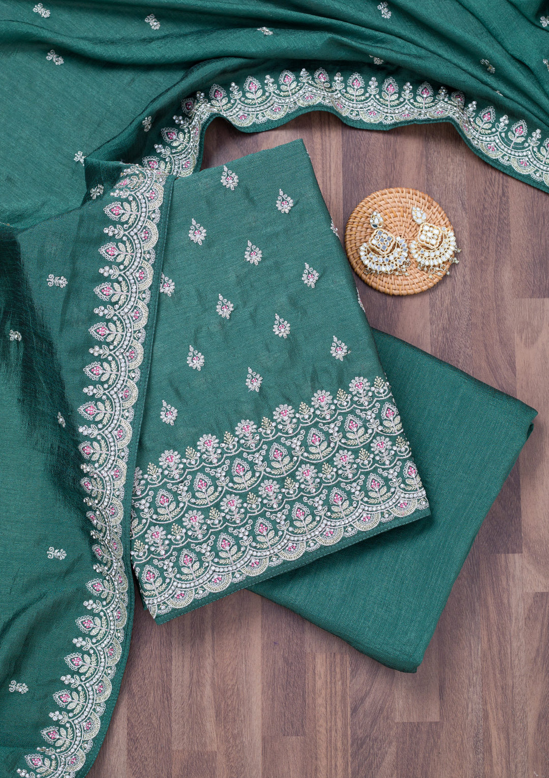 | Sea Green Zariwork Soft Raw Silk Unstitched Salwar Suit | ₹ 5,593 | |