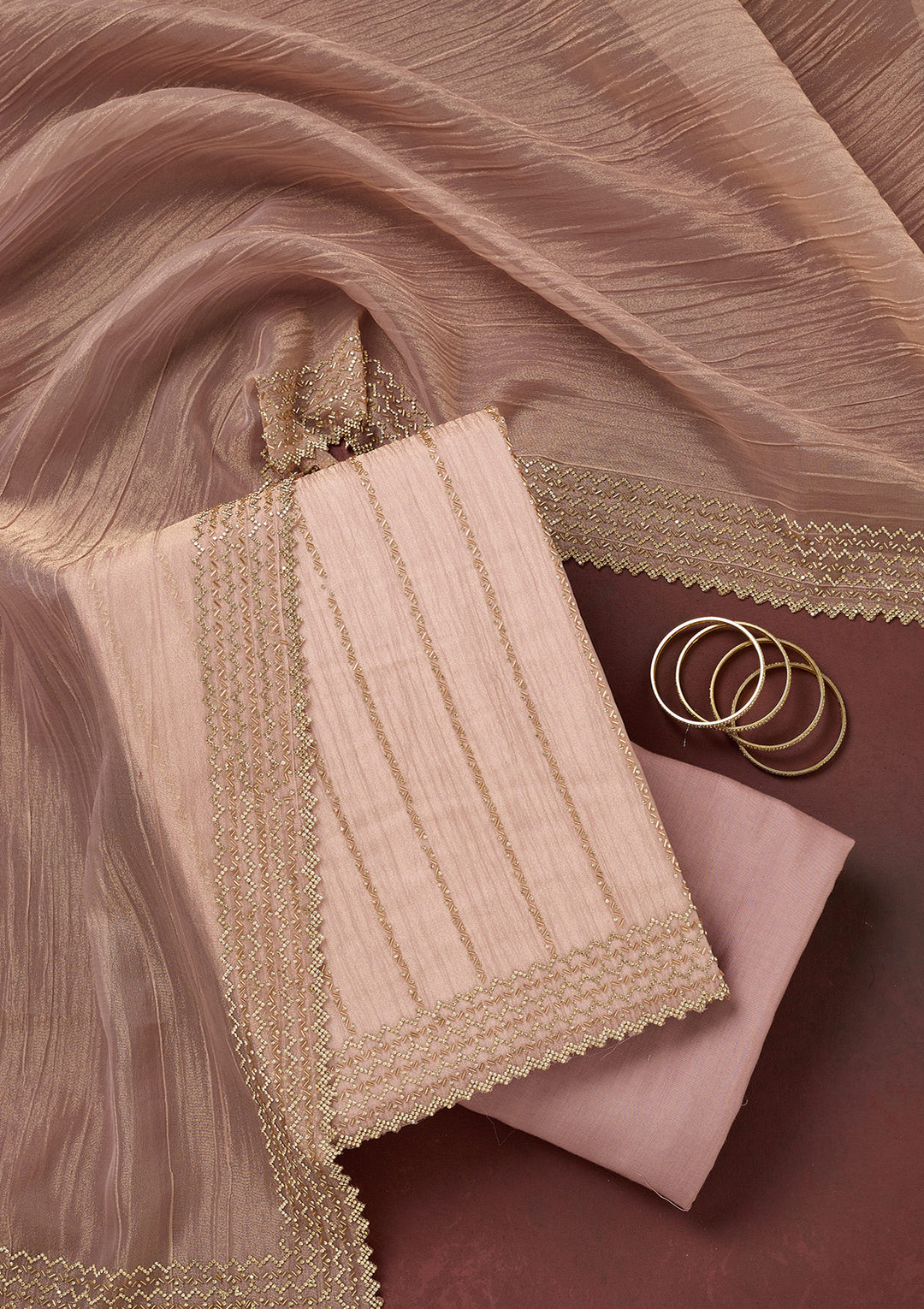 | Light Brown Threadwork Tissue Unstitched Salwar Suit | ₹ 5,592 | |