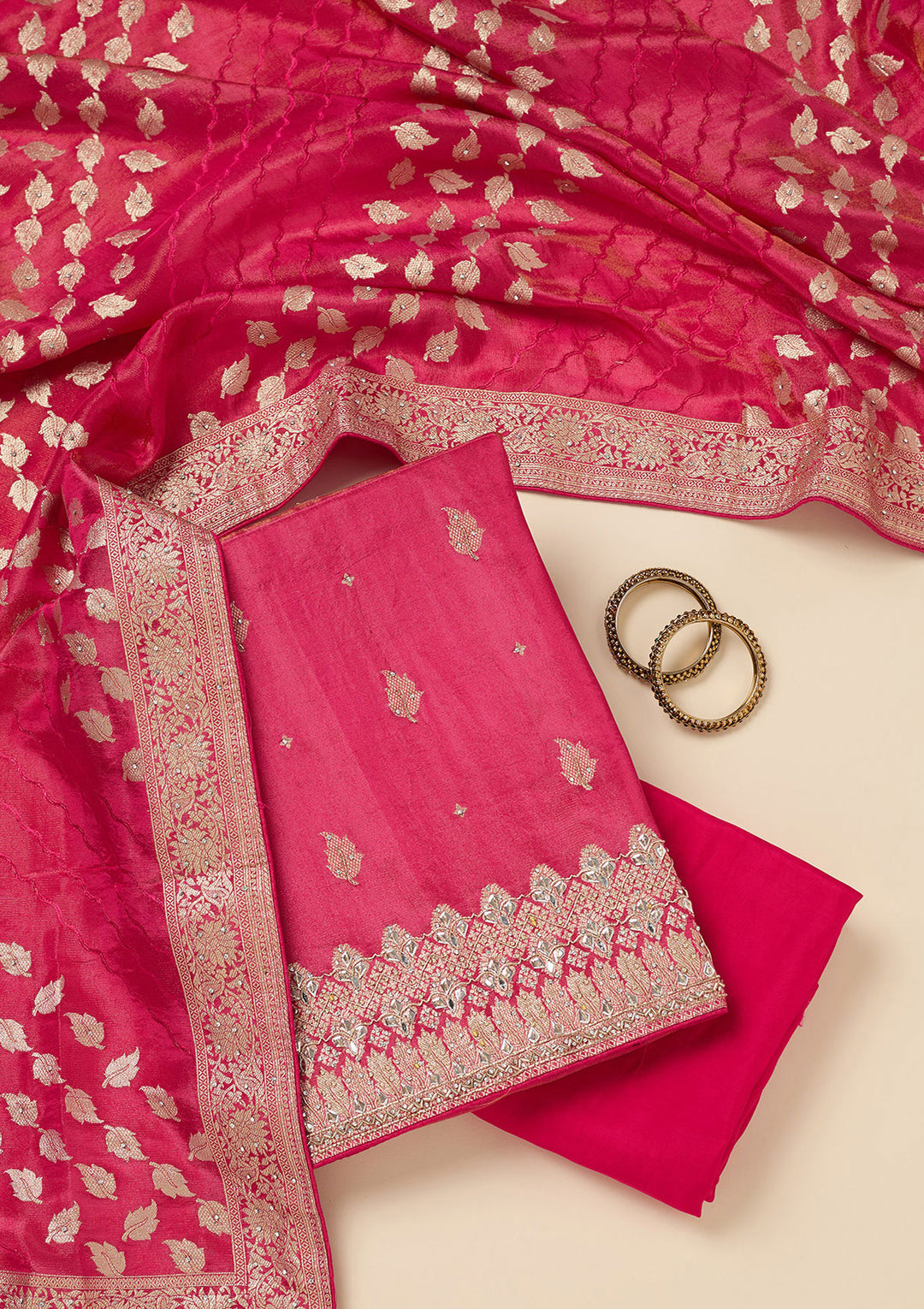 You do not have to stick to the assembled unstitched suit set you got. You can mix and match with different colours and patterns to make the design stand out in a unique way. Selecting the right dupatta is one way to elevate your salwar suit, adding an extra layer of elegance and charm.