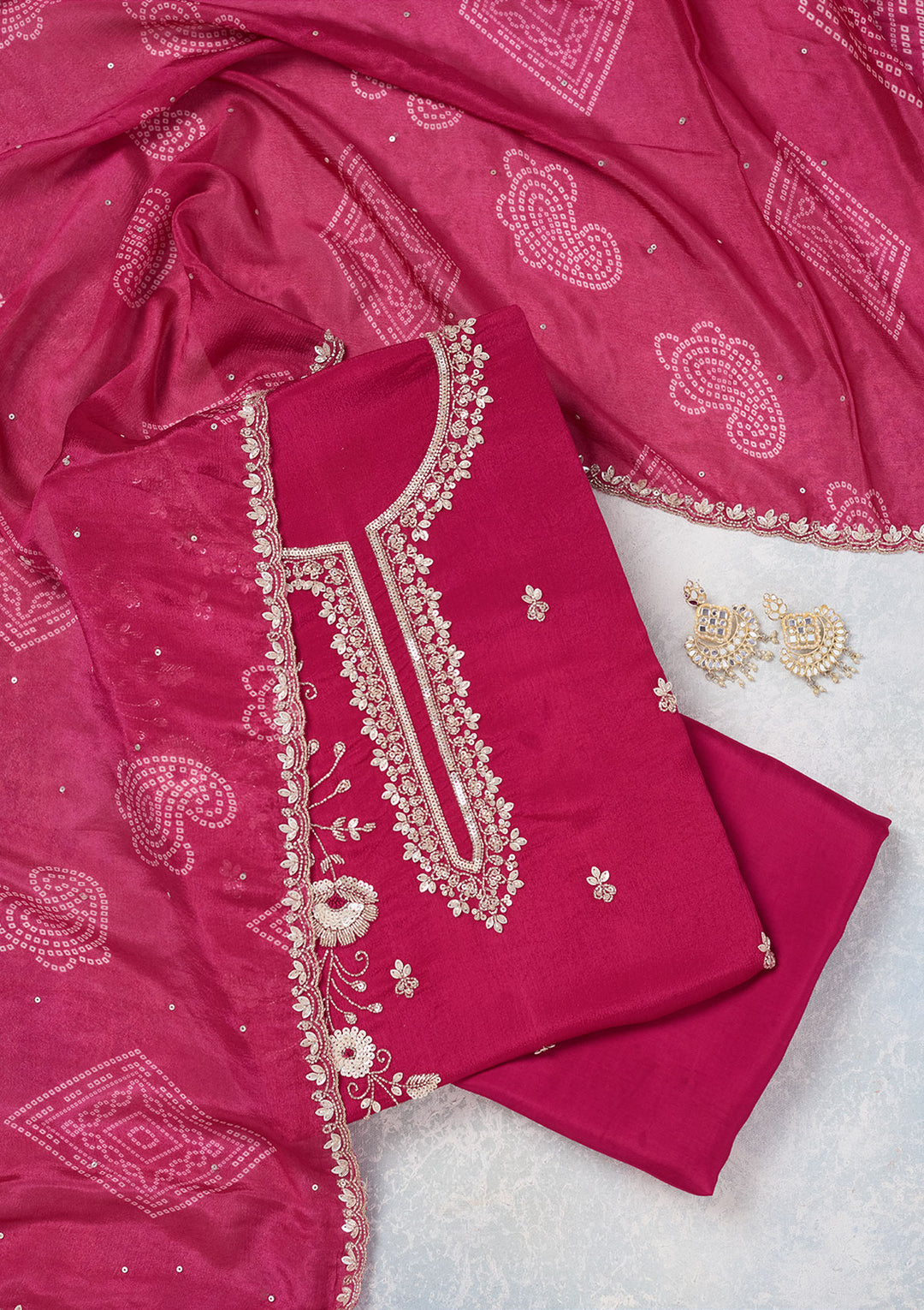 | Rani Pink Stonework Georgette Unstitched Salwar Suit | ₹ 6,293 | |