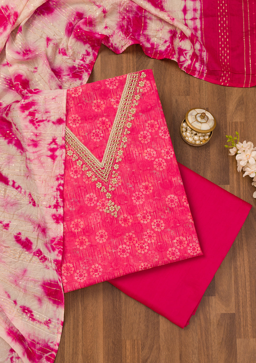 | Pink Threadwork Chinon Unstitched Salwar Suit | ₹ 3,143 | |