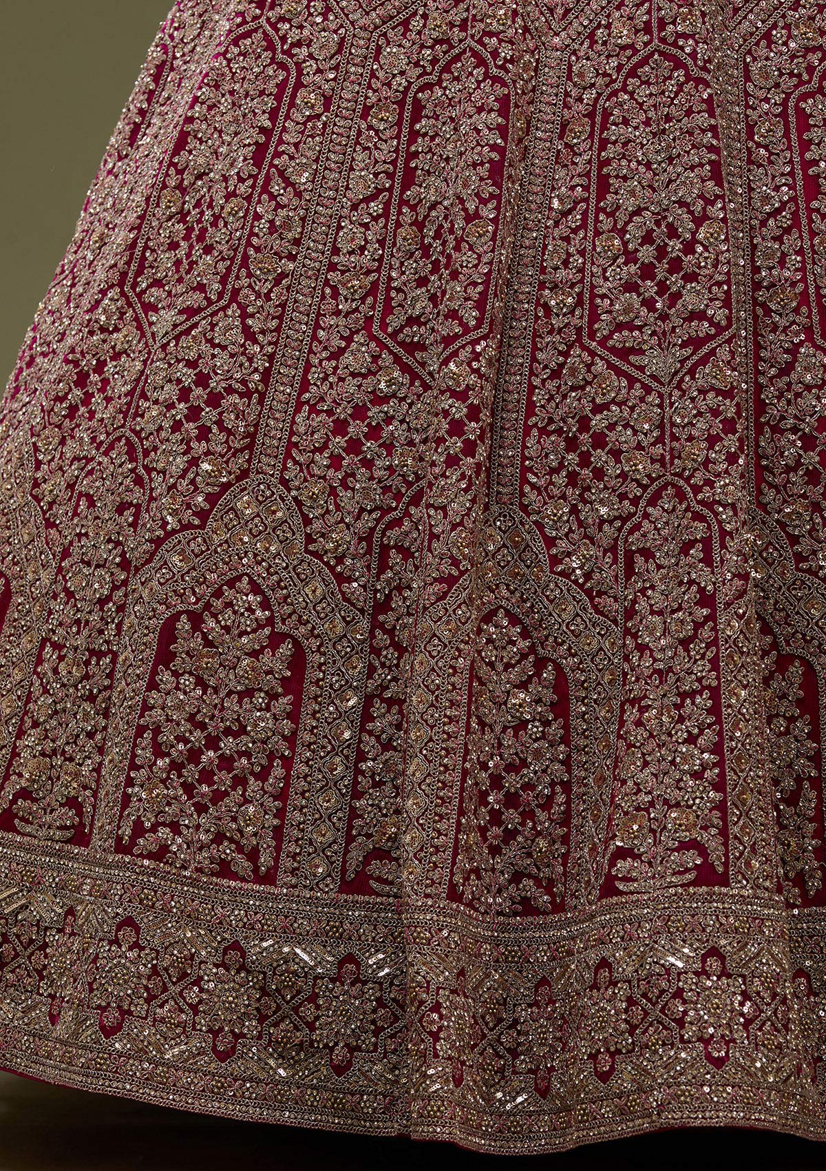 Maroon Zariwork (Gold) Net Readymade Lehenga