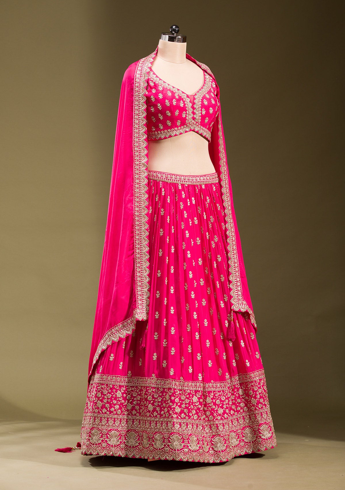Rani Pink Zariwork Georgette Readymade Lehenga