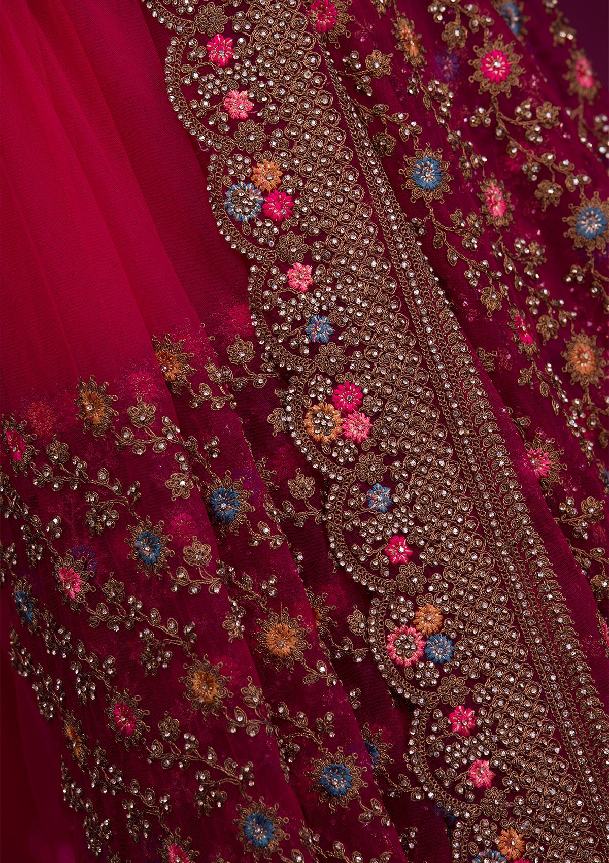 Dive into the whirl of charm and elegance with Koskii's stunning pink net saree, adorned with masterful cording embroidery that dances delightfully across the fabric. This piece radiates a vibrant flair, perfect for those who adore standing out with a blend of tradition and spirited style. Wrap yourself in the epitome of artisanal craftsmanship and feel the exquisite softness of the net embrace your silhouette, promising an evening where you'll dazzle and shine.