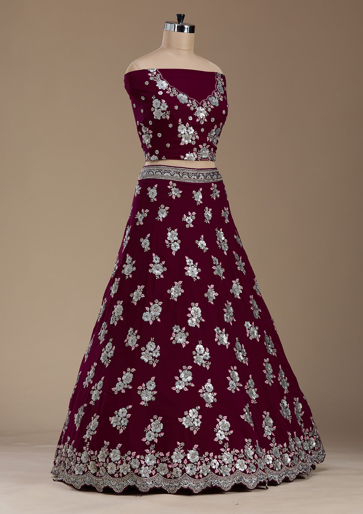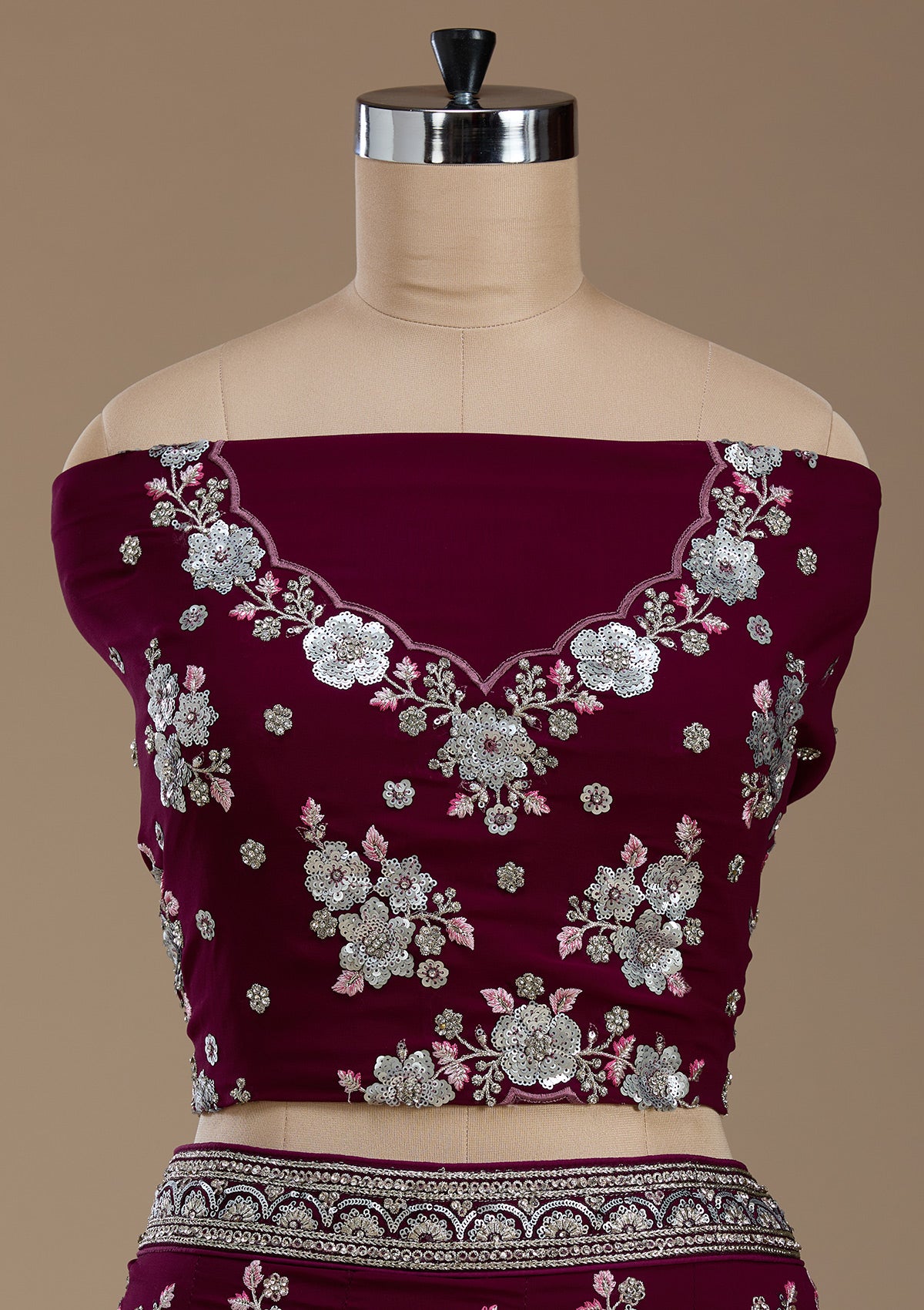 Wine Sequins Georgette Semi-Stitched Lehenga
