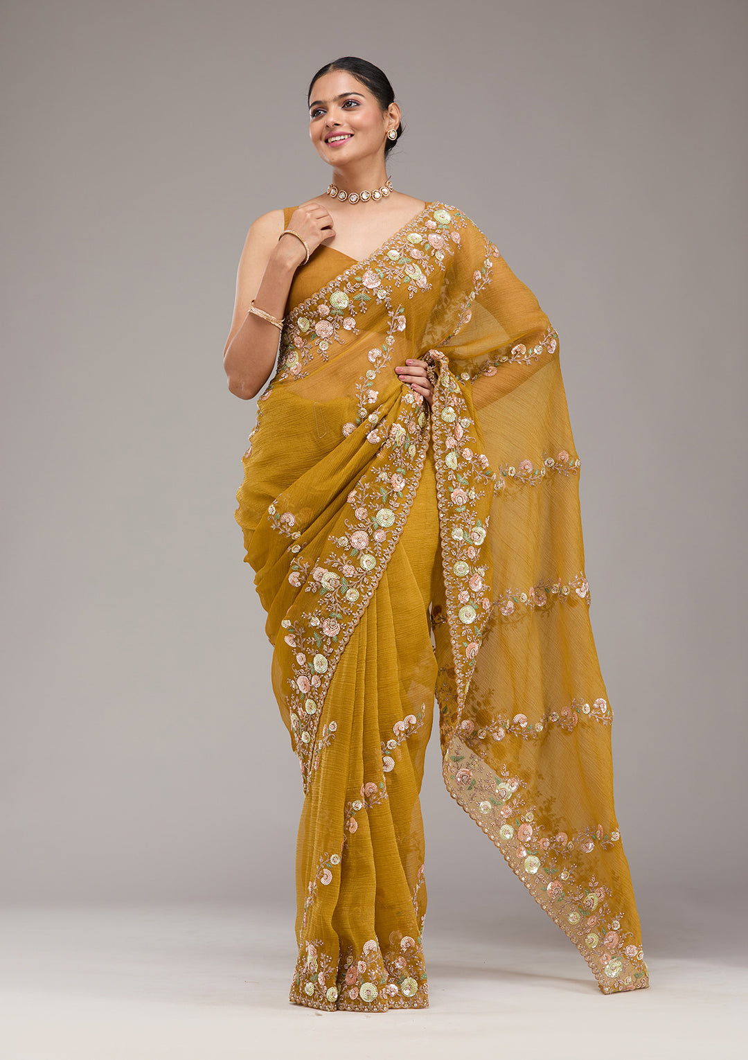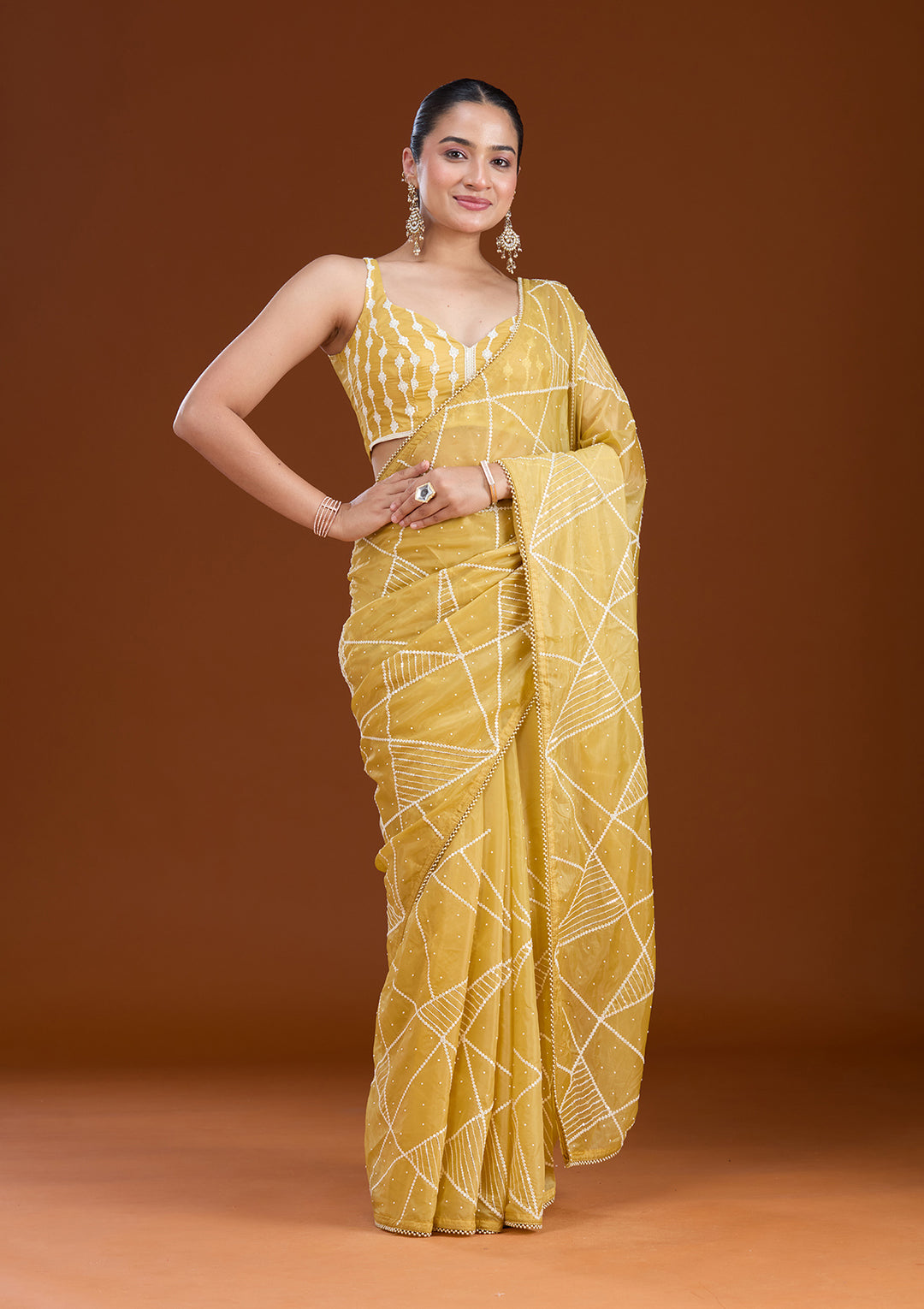 | Mustard Stonework Chiffon Saree | ₹ 2,093 | |