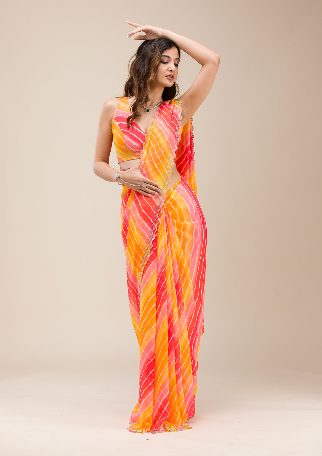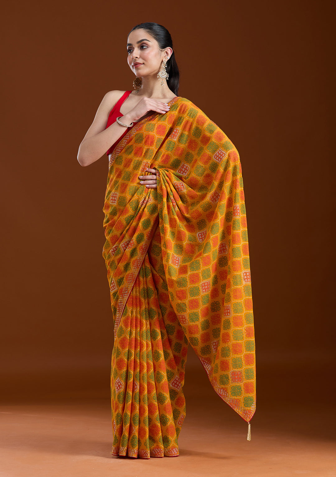 - Yellow Bandhani Saree: A yellow Bandhani Saree is colourful and vibrant. The festive season is the best time to use this style.